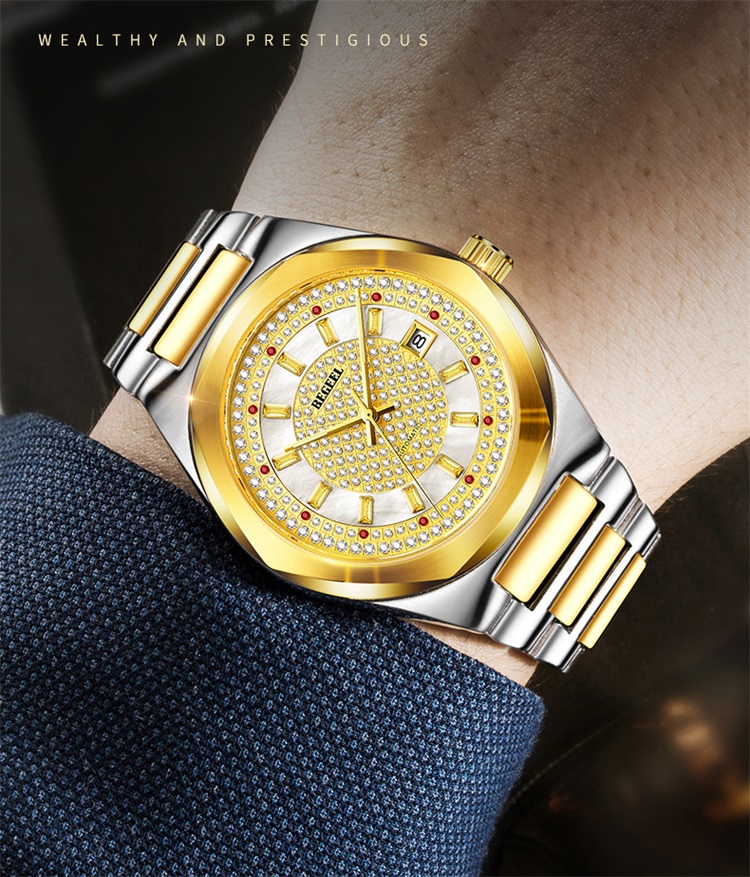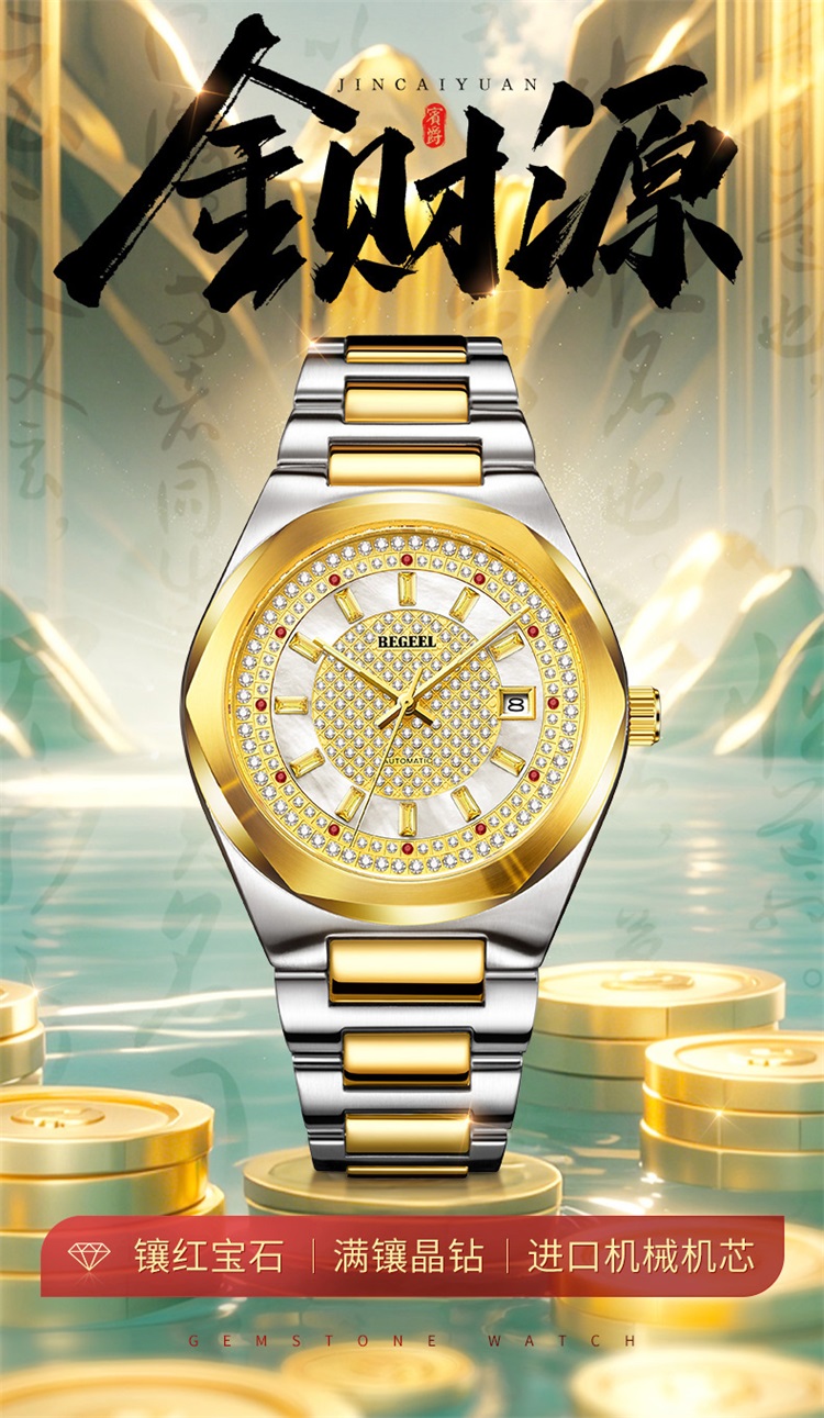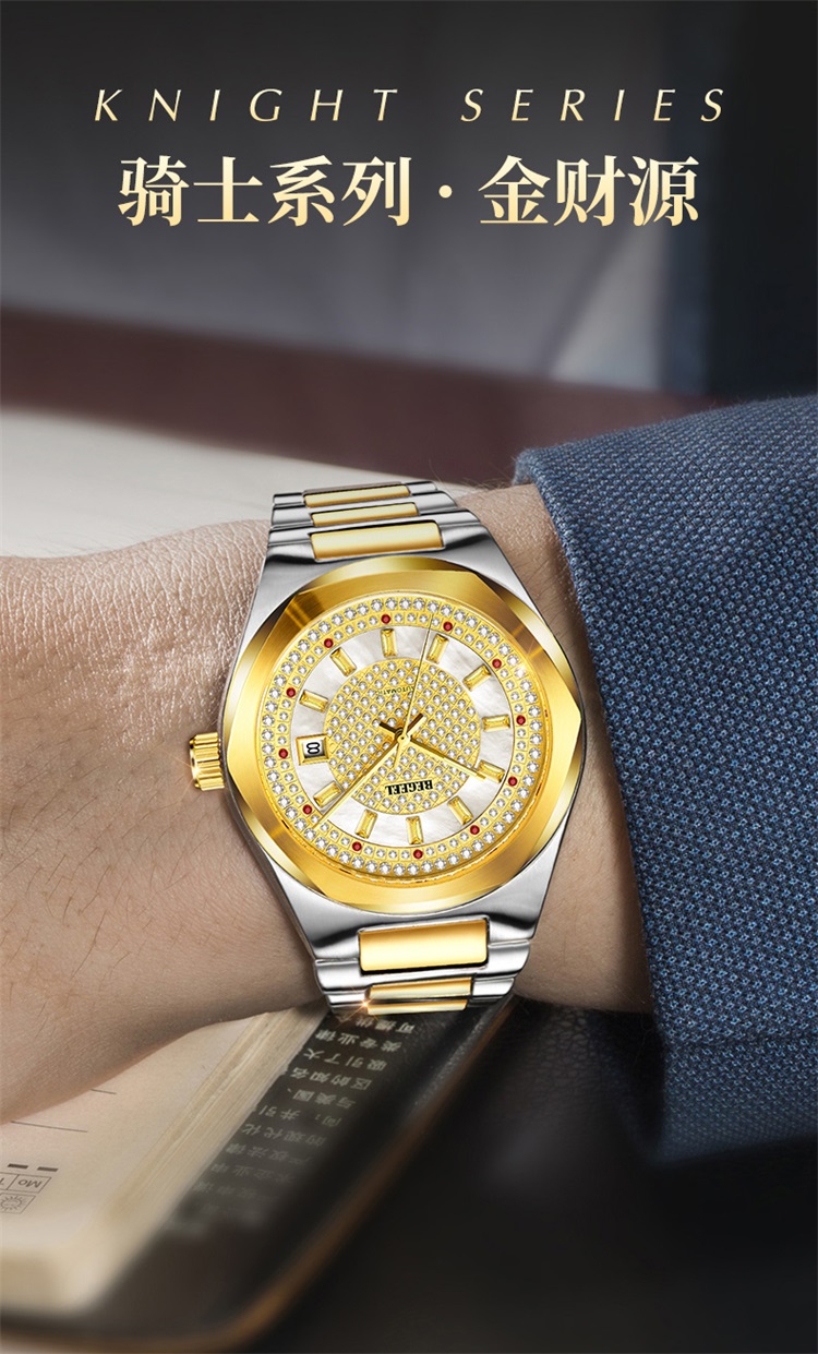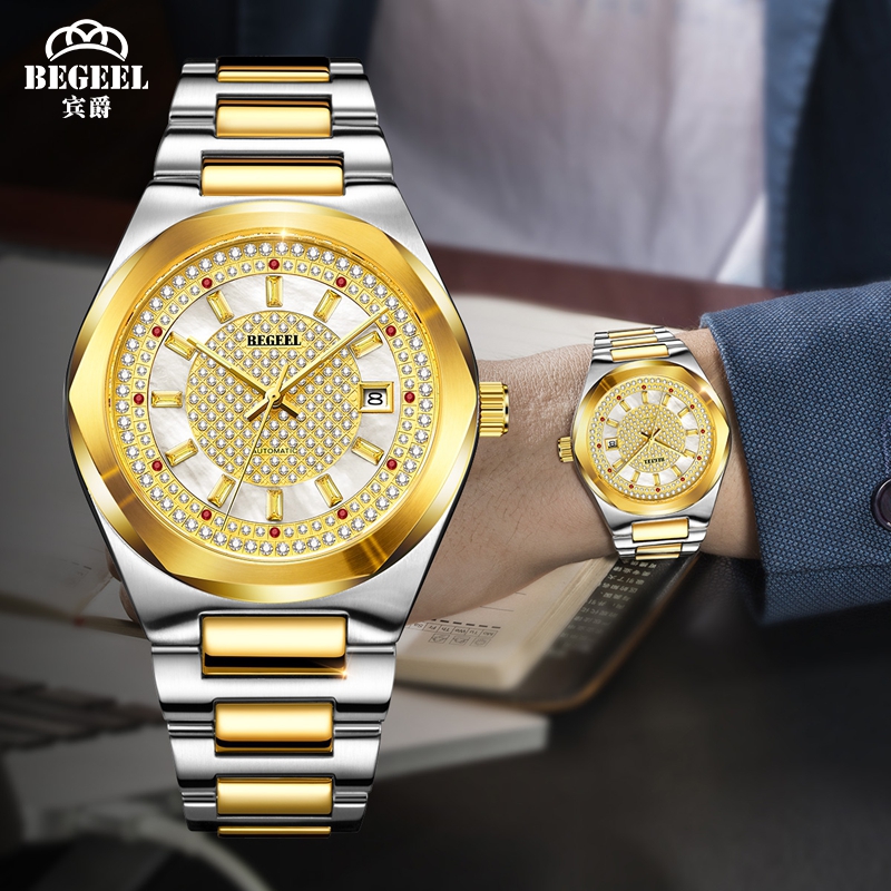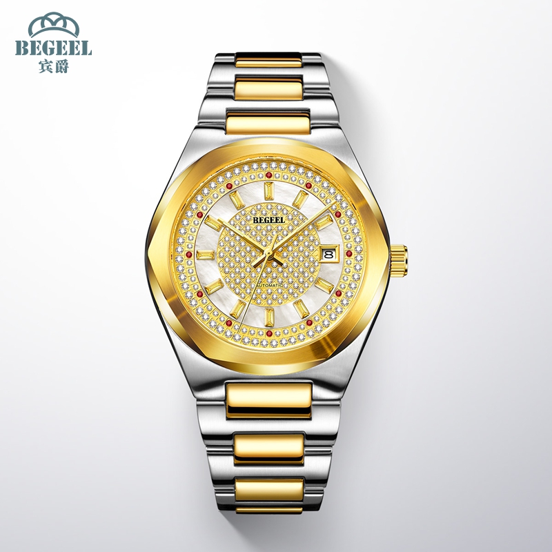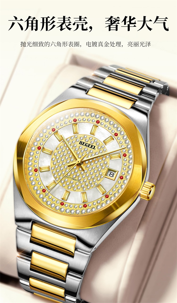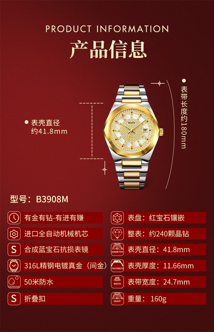每证一品-宾爵版权款镶钻4颗红宝石奢华气质含金进口机芯机械男士腕表轻奢(电镀真金、12颗红宝石、11粒黄色锆石、132粒晶钻、自动化机芯)B3908M44J44