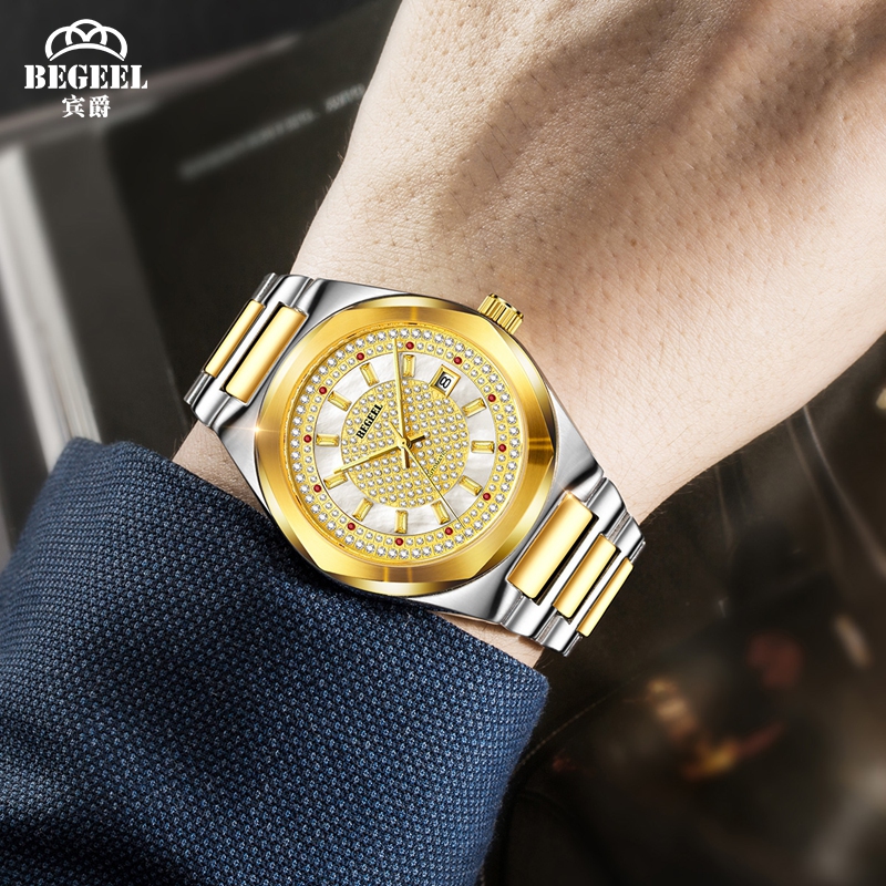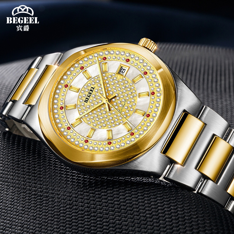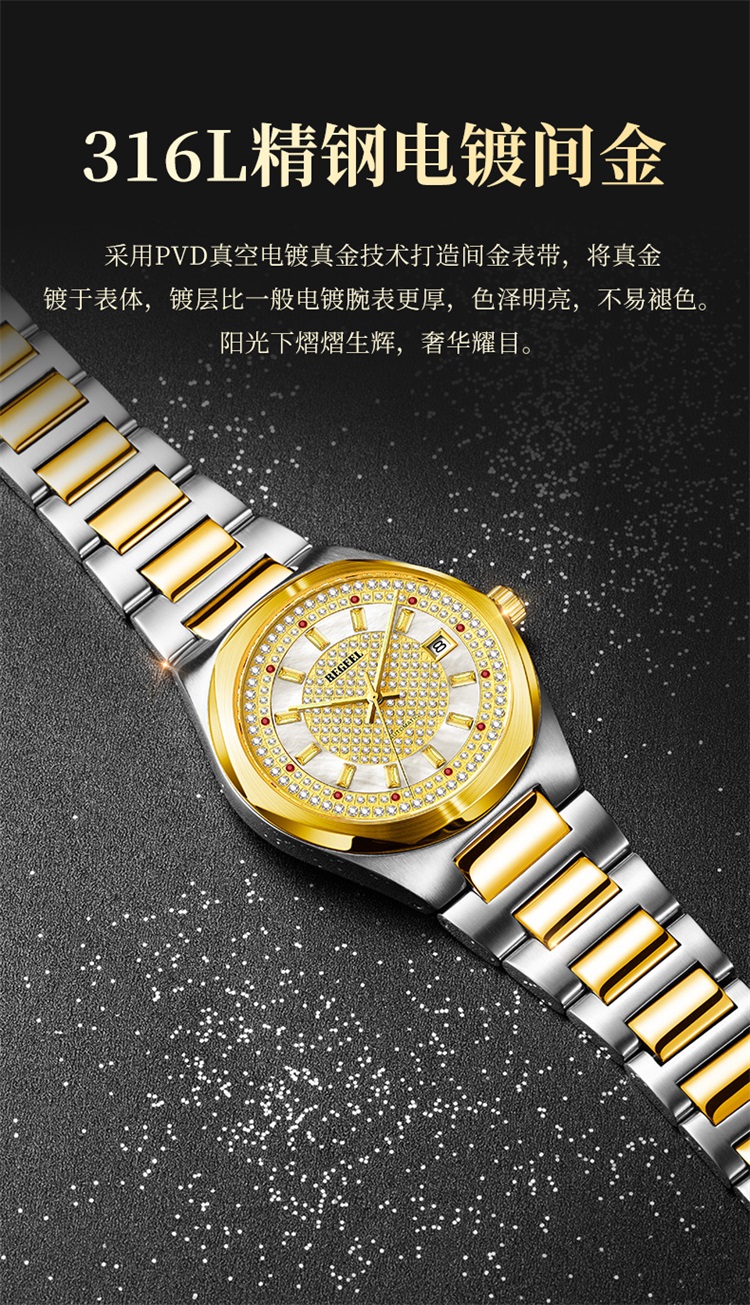 BNVLDYA伯尼丹雅腕表新款正品大表盘个性女表钢带手表女韩版时尚贝母镶钻防水石英手表
