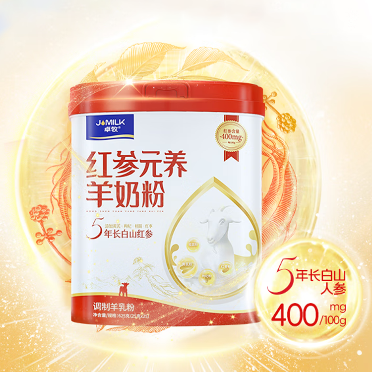 卓牧 红参元养羊奶粉 女士成人中老年养元奶 625g*2罐 精美手提礼盒装