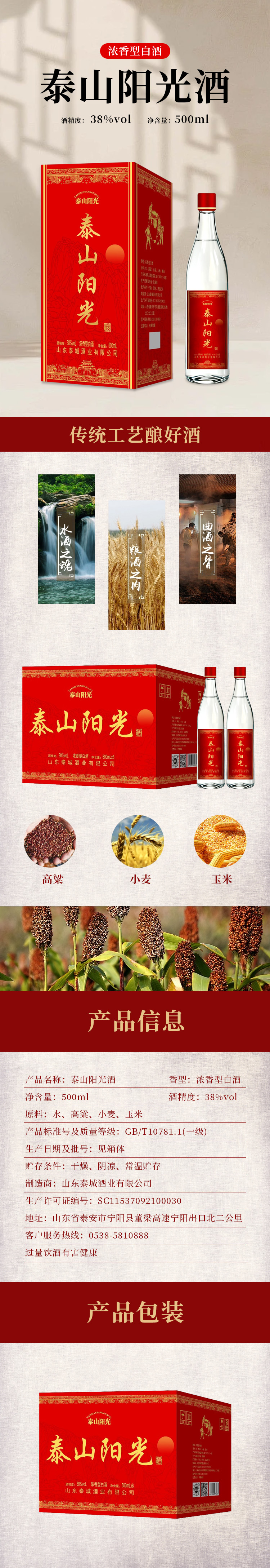 泰山阳光 38度浓香型白酒 500ml/瓶单瓶装 整箱起拍(不含手提袋)生产日期:2021年6月19日