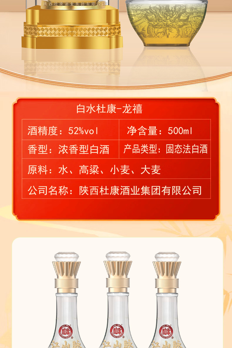 白水杜康龙禧500ml*2瓶 黄皮外箱包装