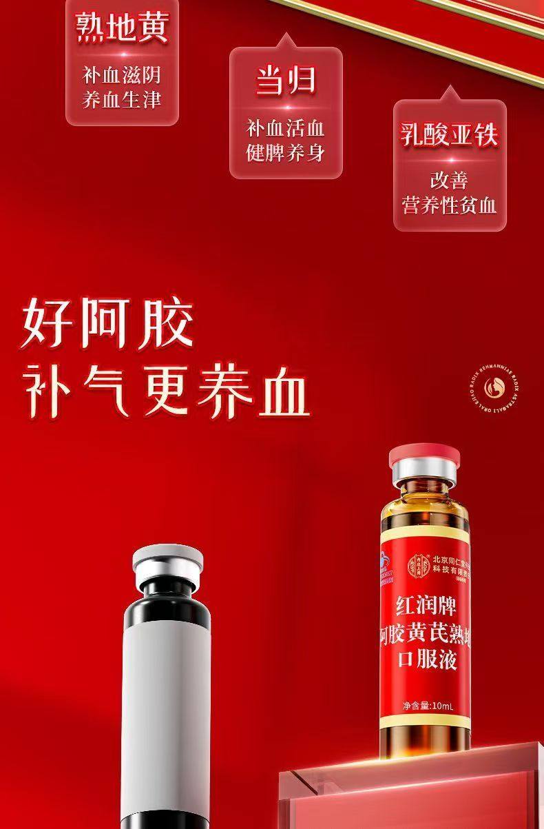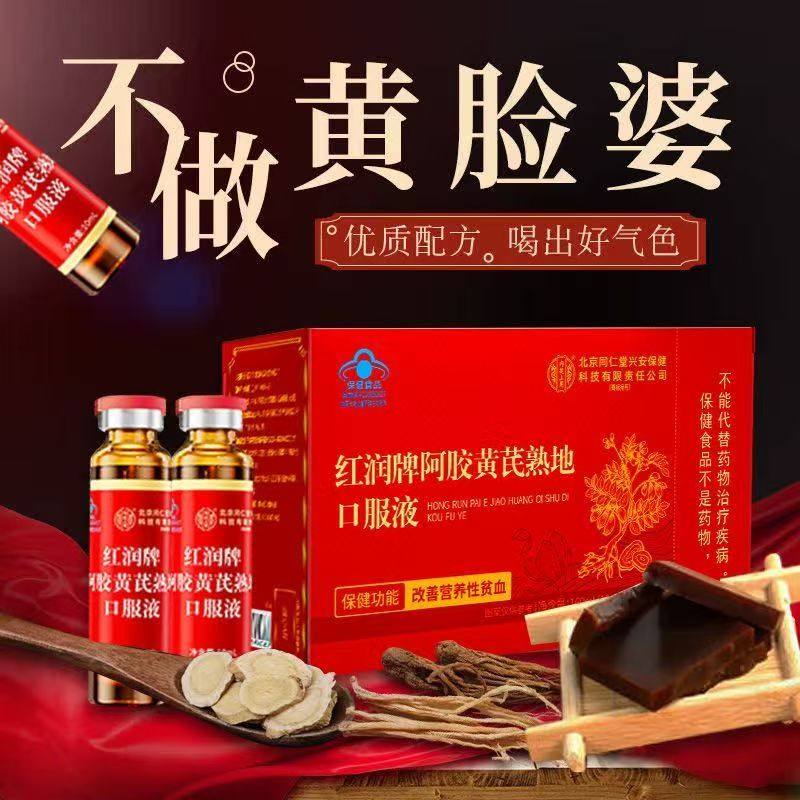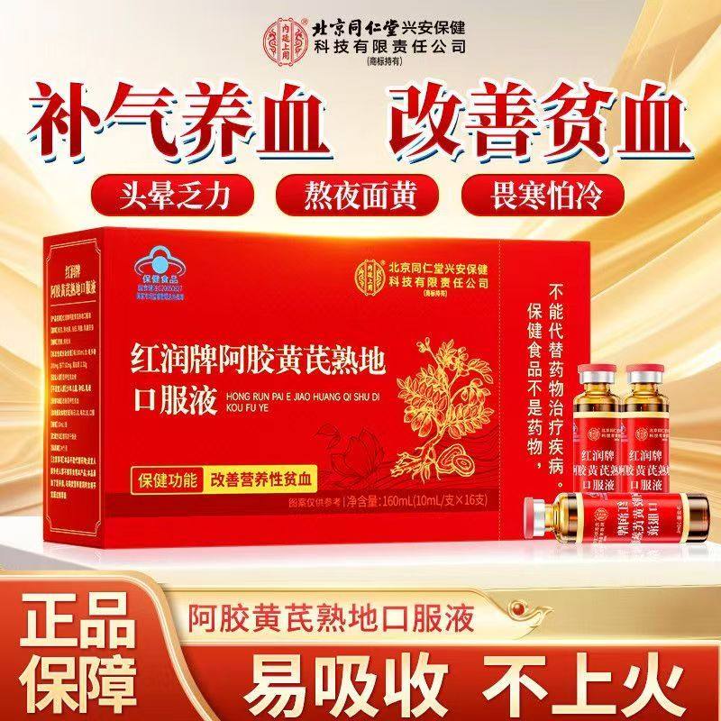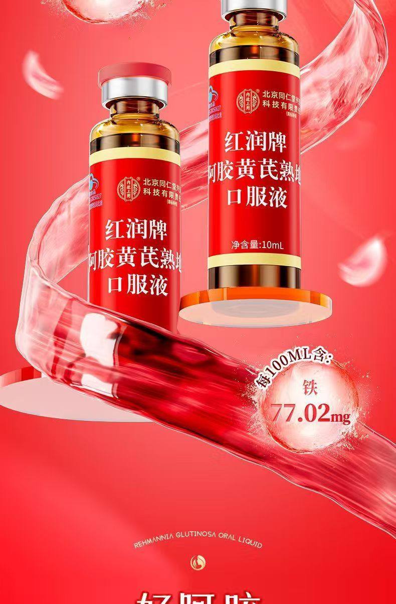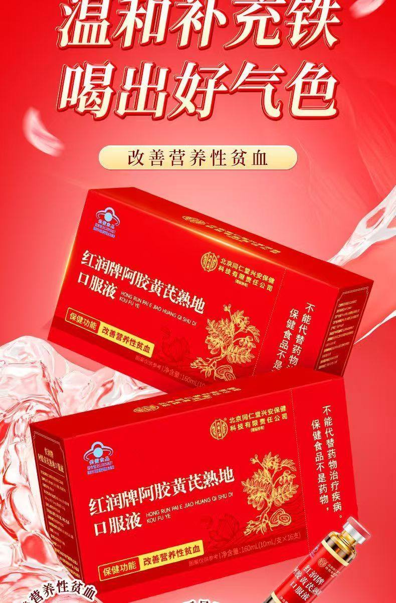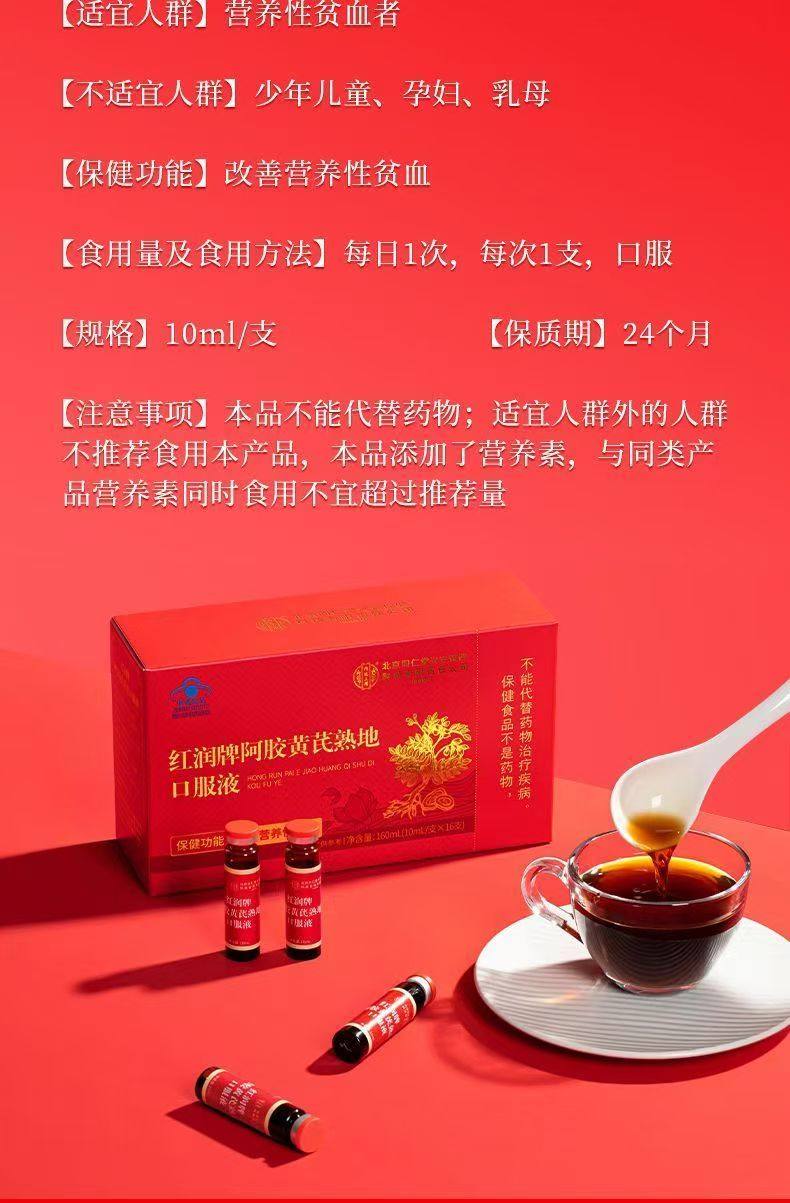 北京同仁堂内廷上用红润牌阿胶黄芪熟地口服液改善营养性贫血AB