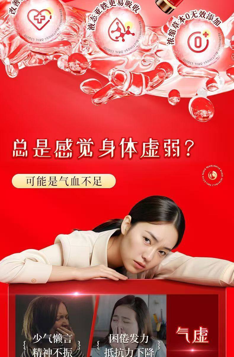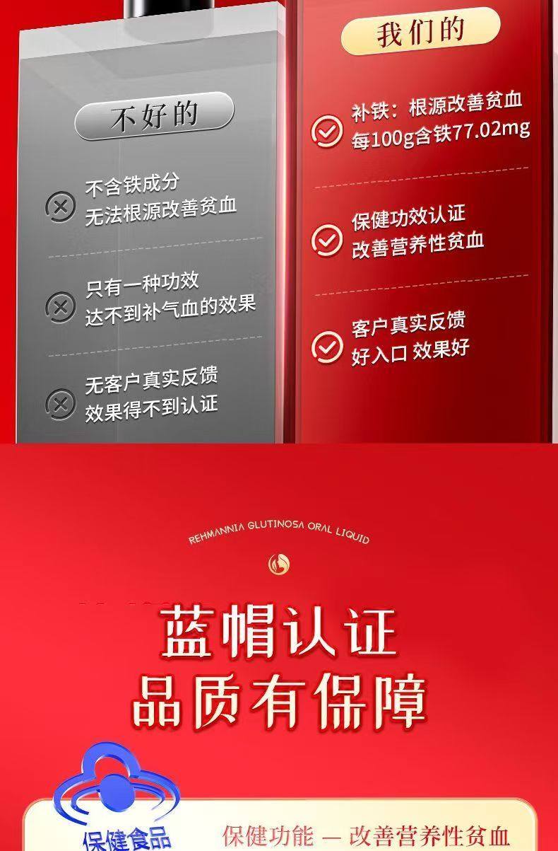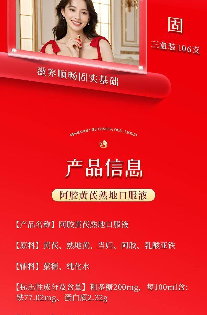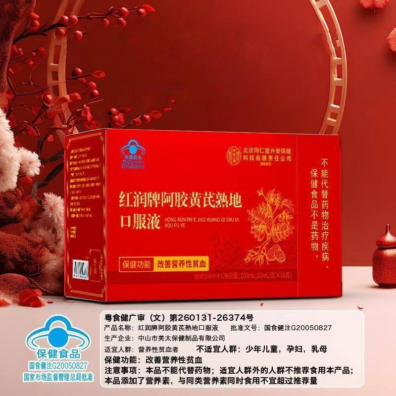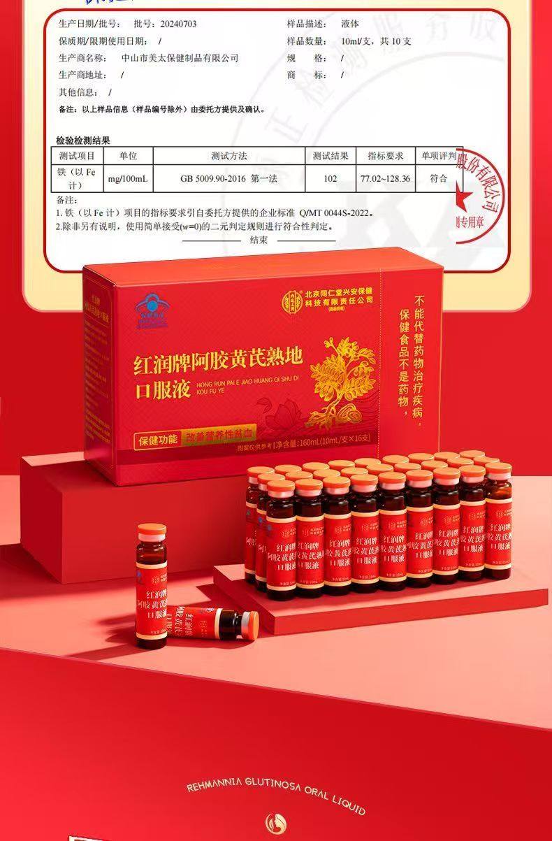 北京同仁堂内廷上用红润牌阿胶黄芪熟地口服液改善营养性贫血AB