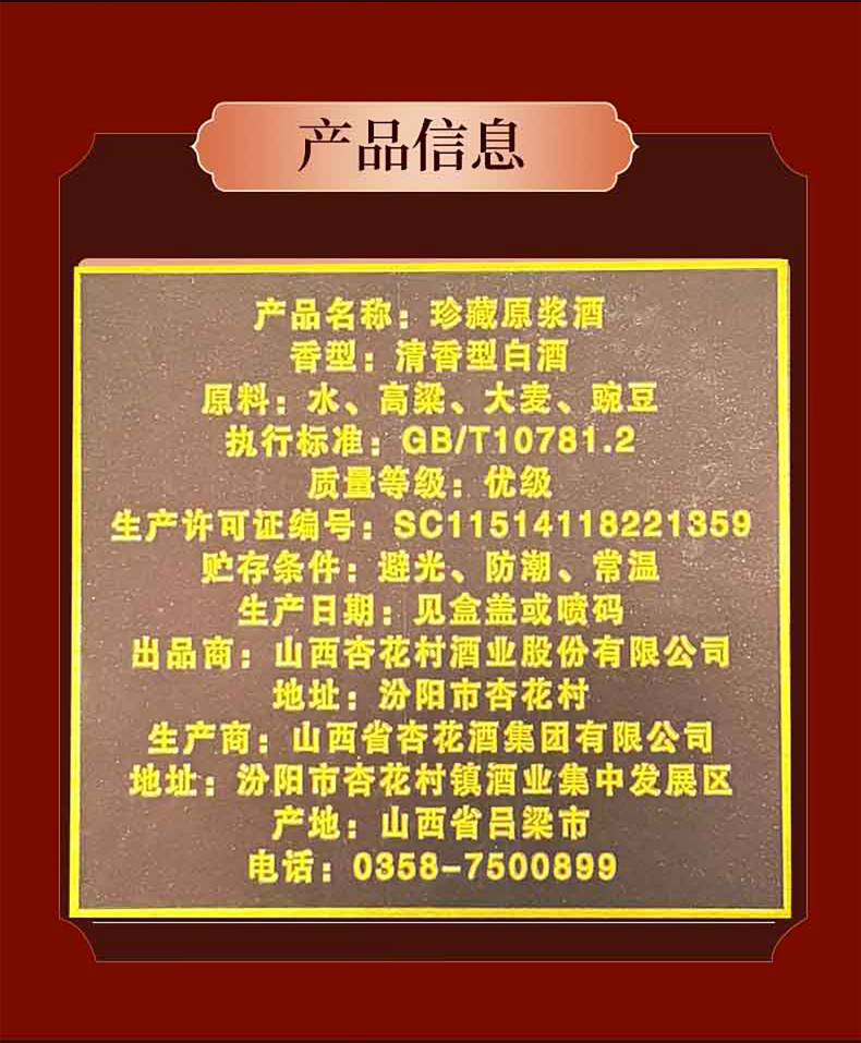 杏花村珍藏原浆30清香型53度475ml*2瓶