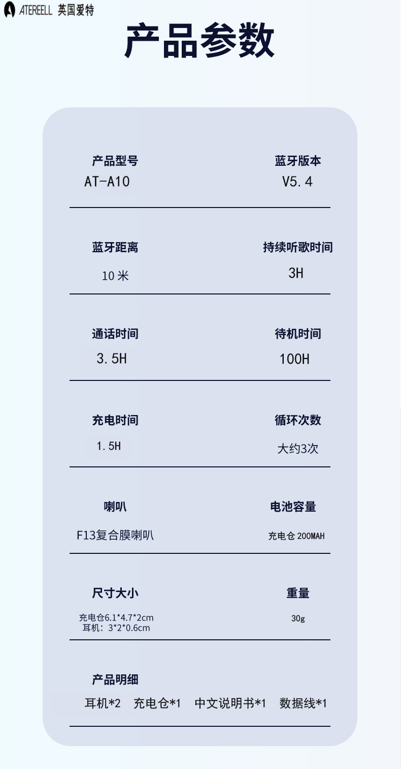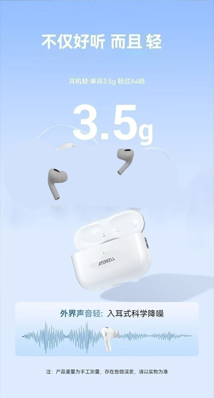爱特瑞耳 入耳式无线蓝牙耳机 AT-A10 电竞游戏/办公/通勤必备