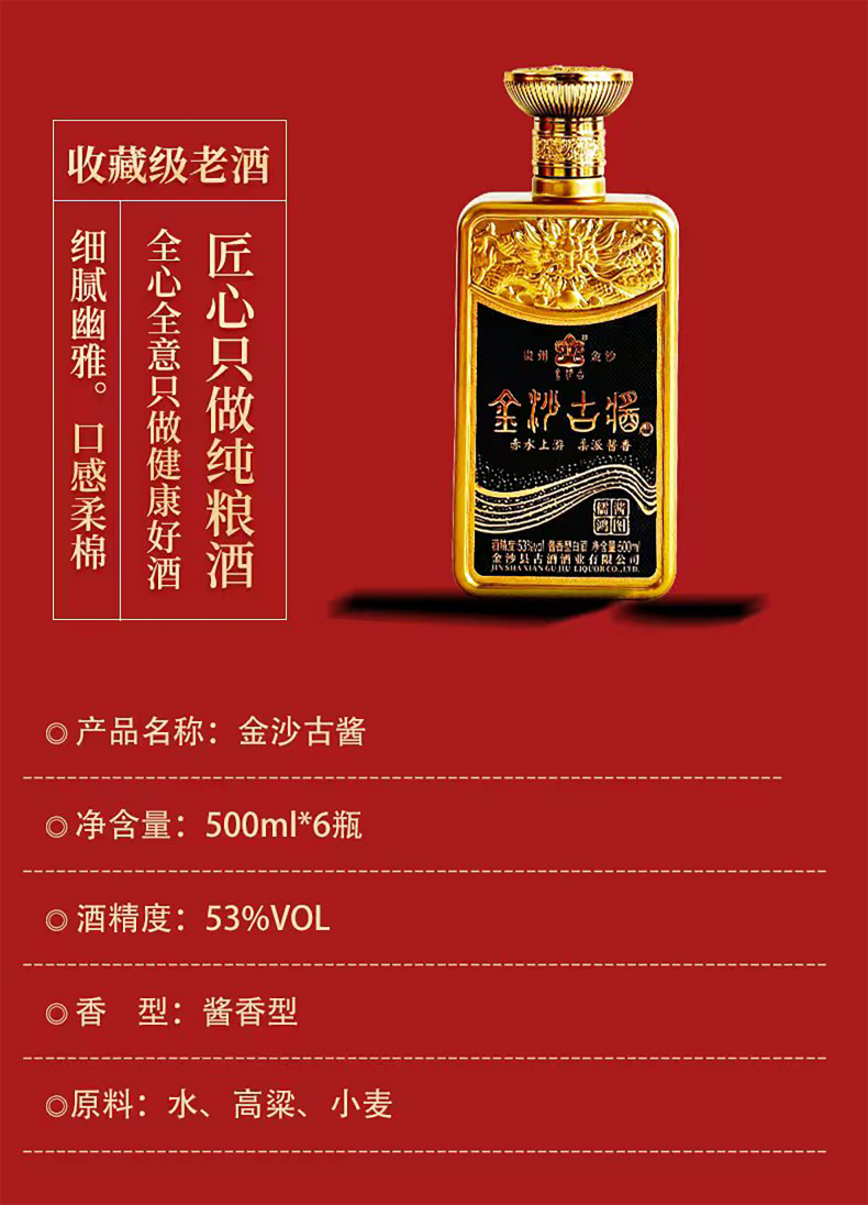 金沙古酱儒酱鸿图53度酱香型整箱500ml*6瓶