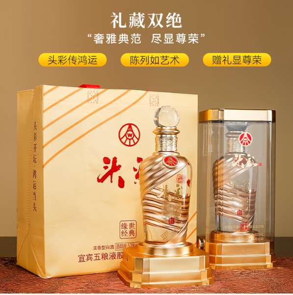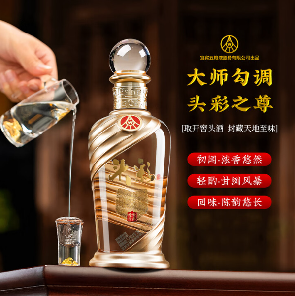 五粮液股份出品 白酒 浓香型白酒 纯粮酒 礼盒装 52度 500mL 1瓶 头彩1瓶