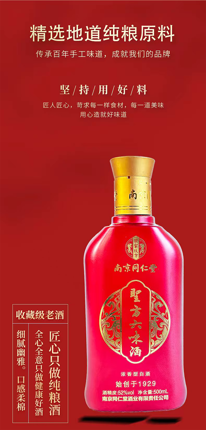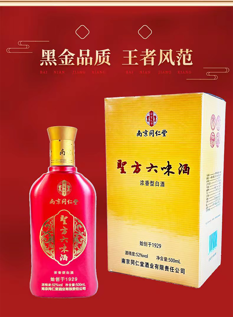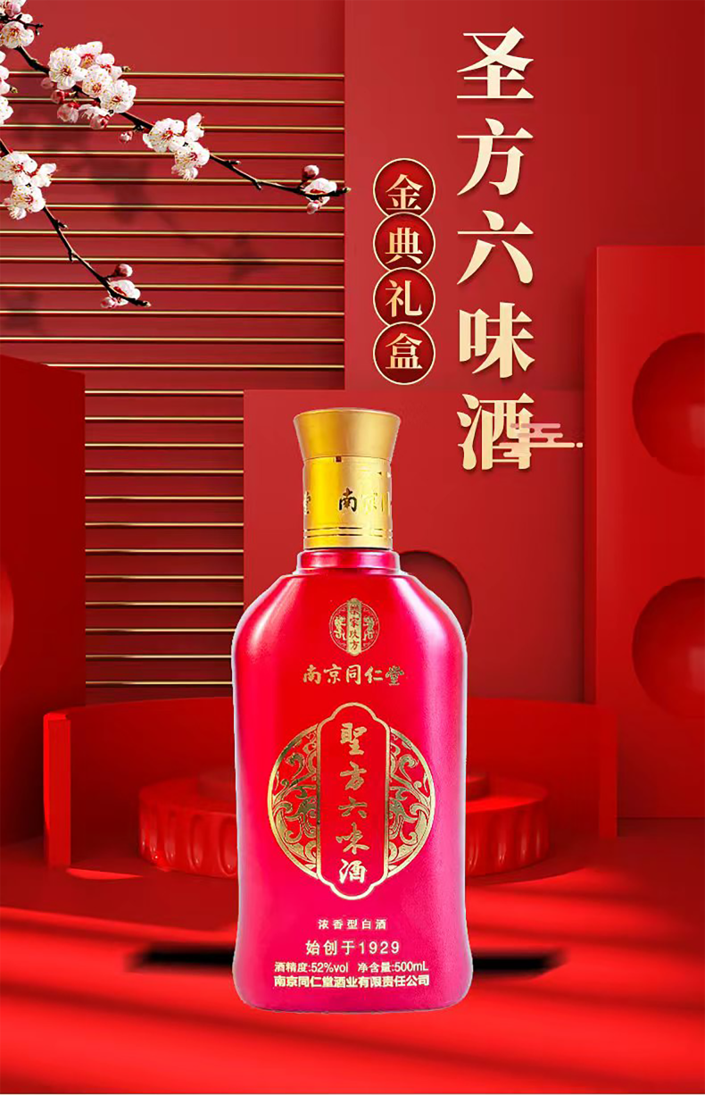 南京同仁堂圣方六味酒52度整箱500ml*4瓶