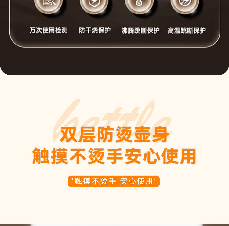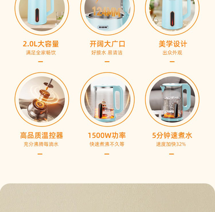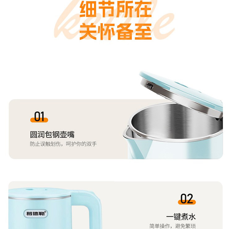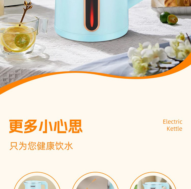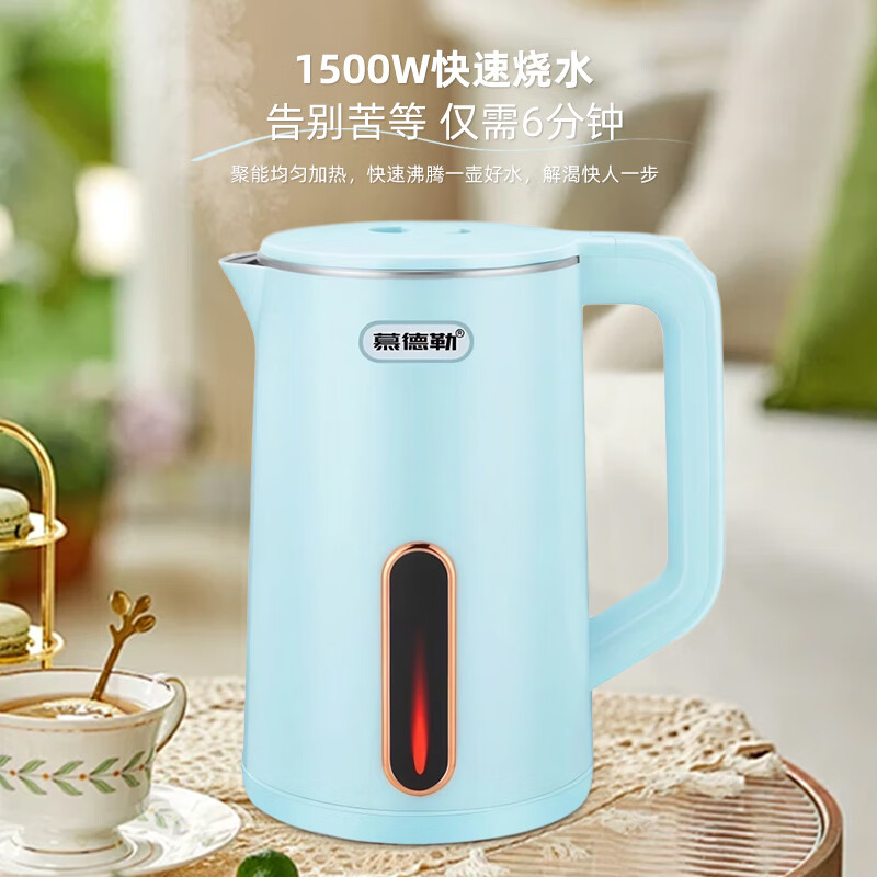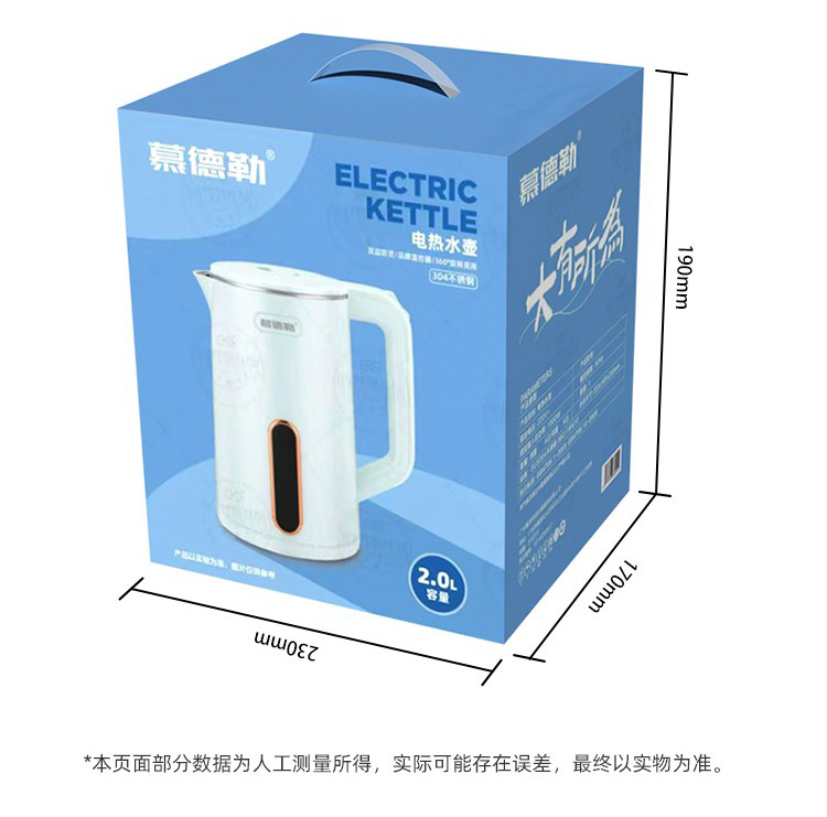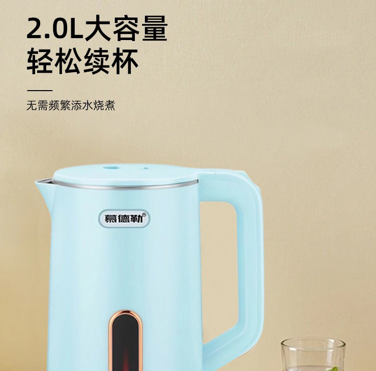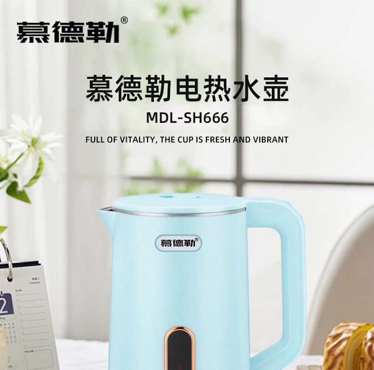慕德勒电热水壶 2L大容量双层防烫自动断电大广口一键煮水MDL-SH666 彩盒+邮购包