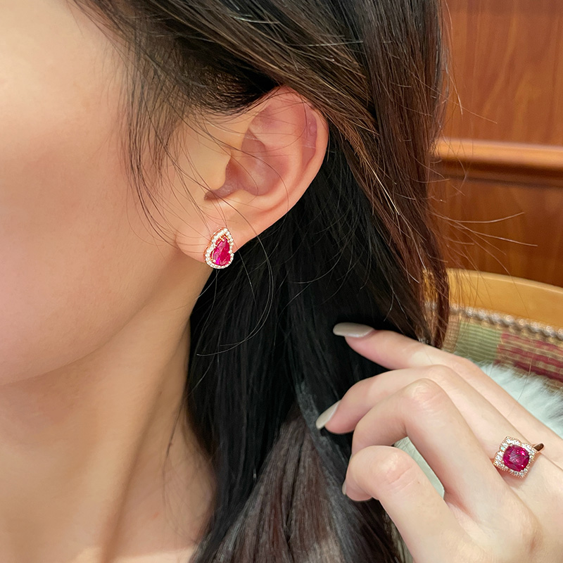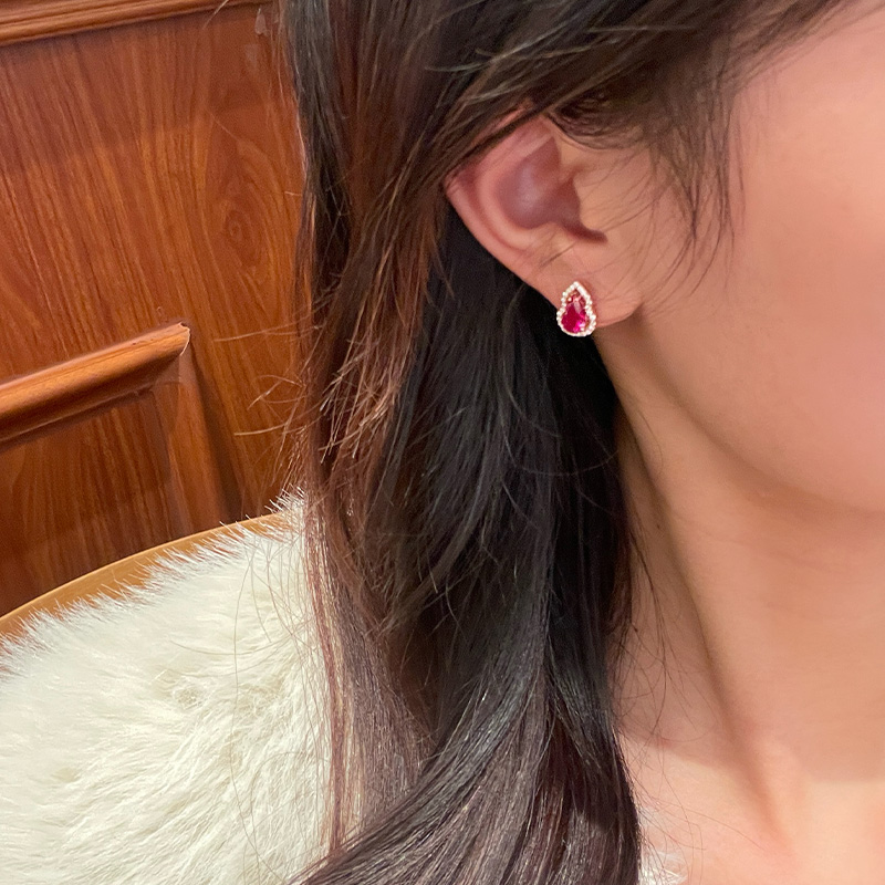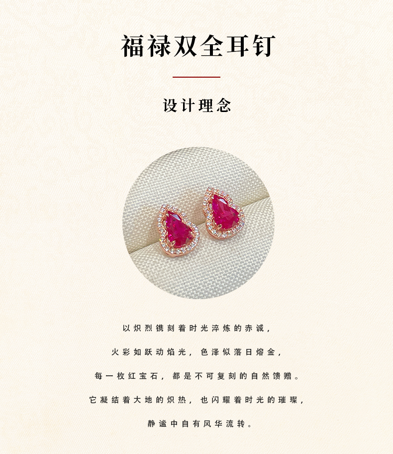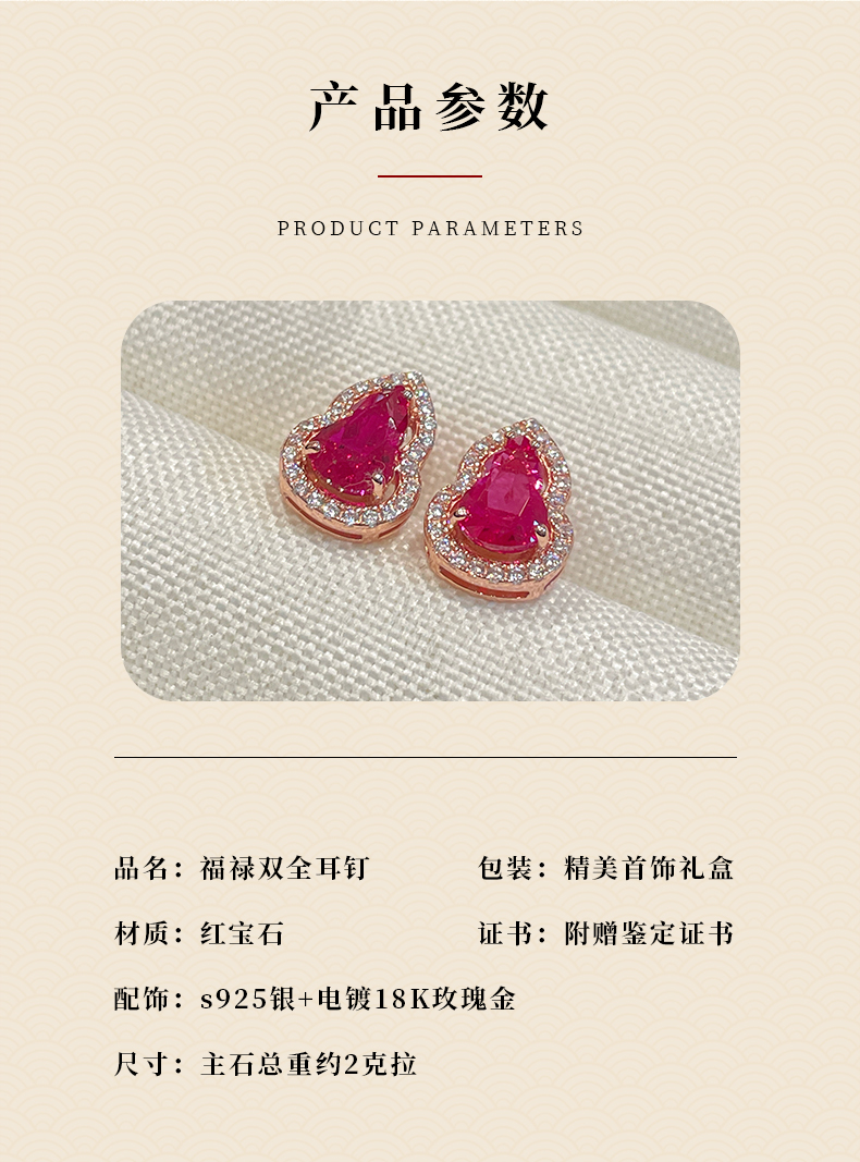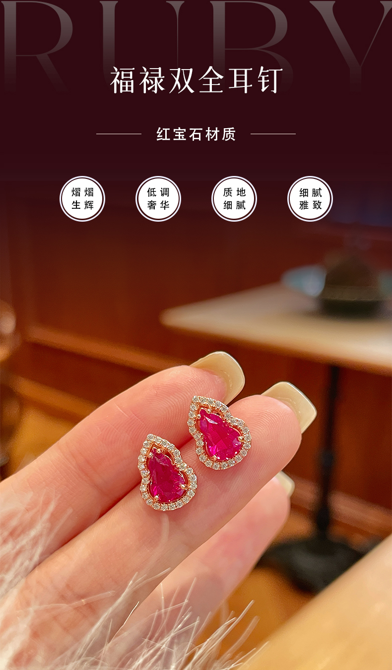 琳琯瑛福禄双全耳钉【S925银+电镀18K玫瑰金+实验室培育红宝石主石总重约2克拉】