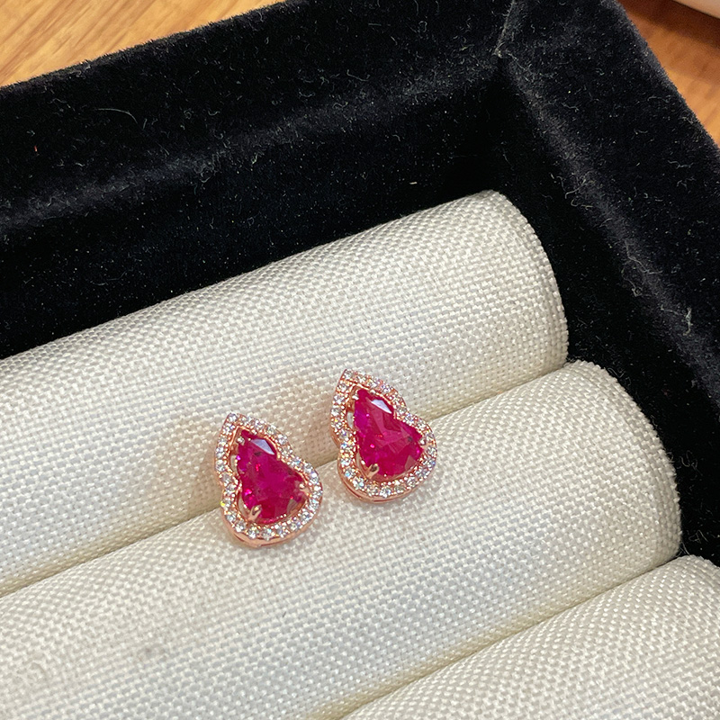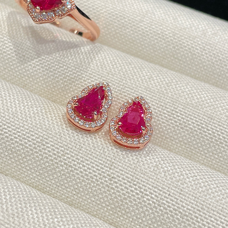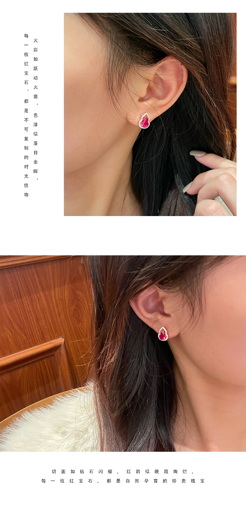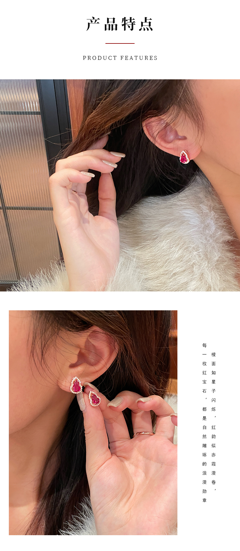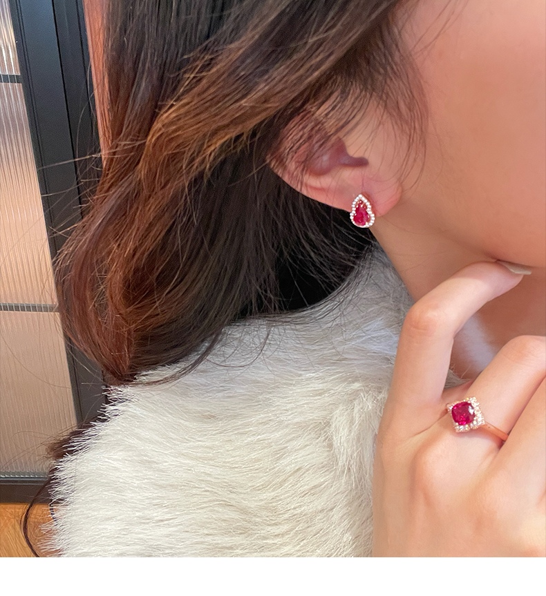 琳琯瑛福禄双全耳钉【S925银+电镀18K玫瑰金+实验室培育红宝石主石总重约2克拉】