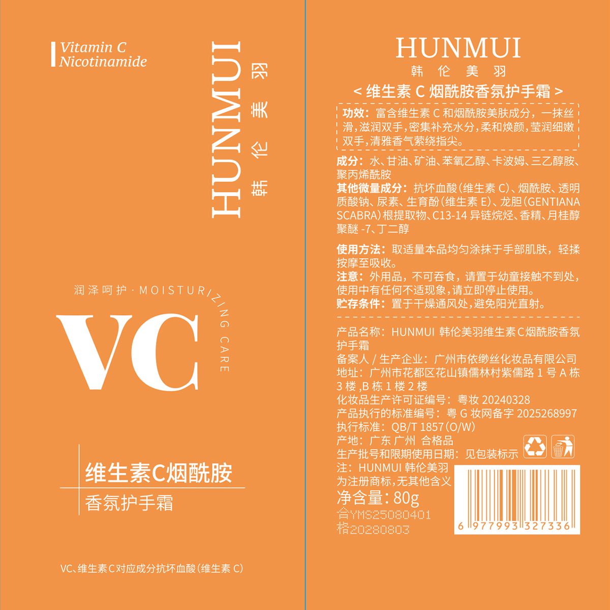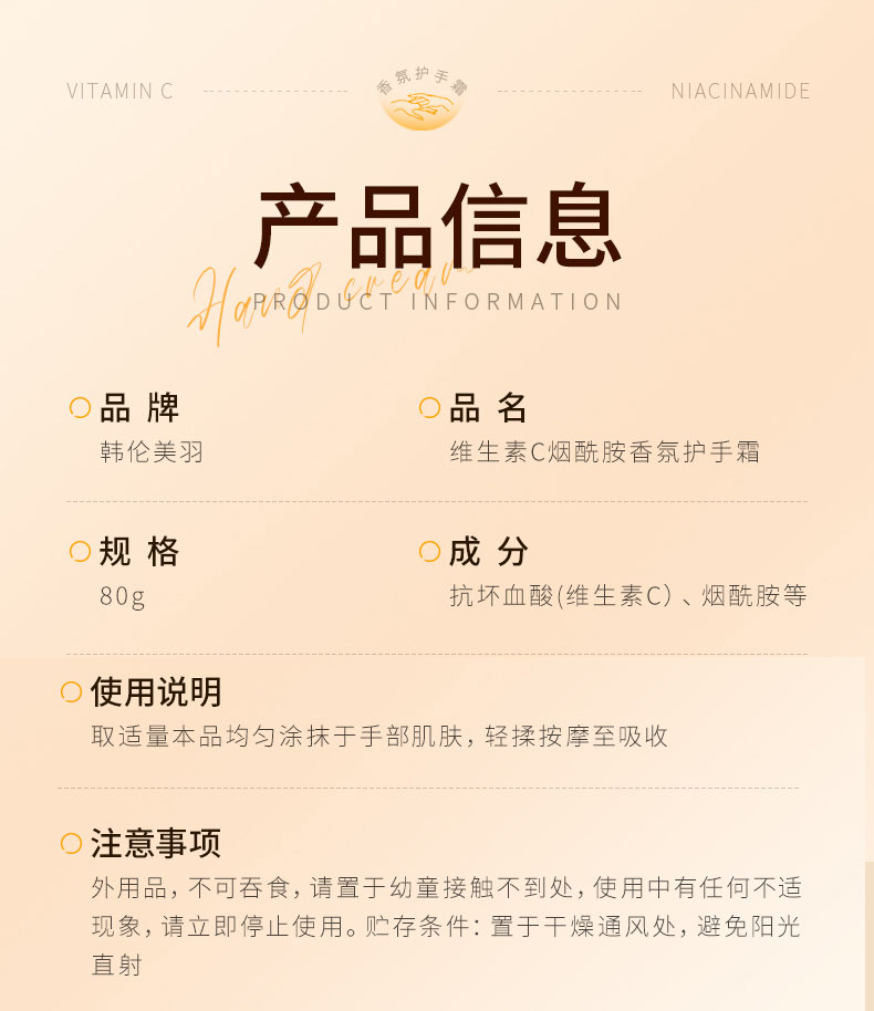 【四支装】韩伦美羽-维生素C烟酰胺香氛护手霜80g(橙色款)美白护手霜 SY10420