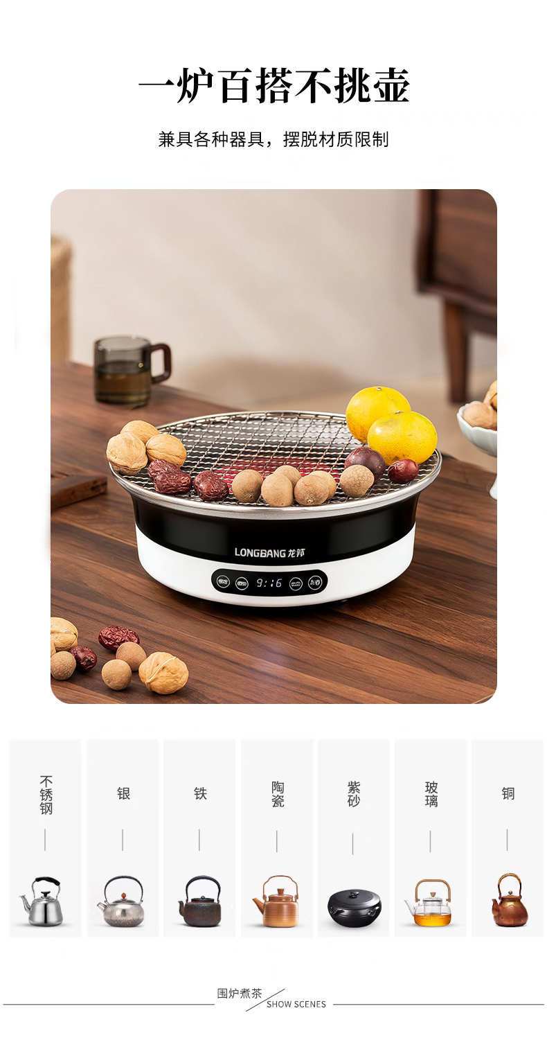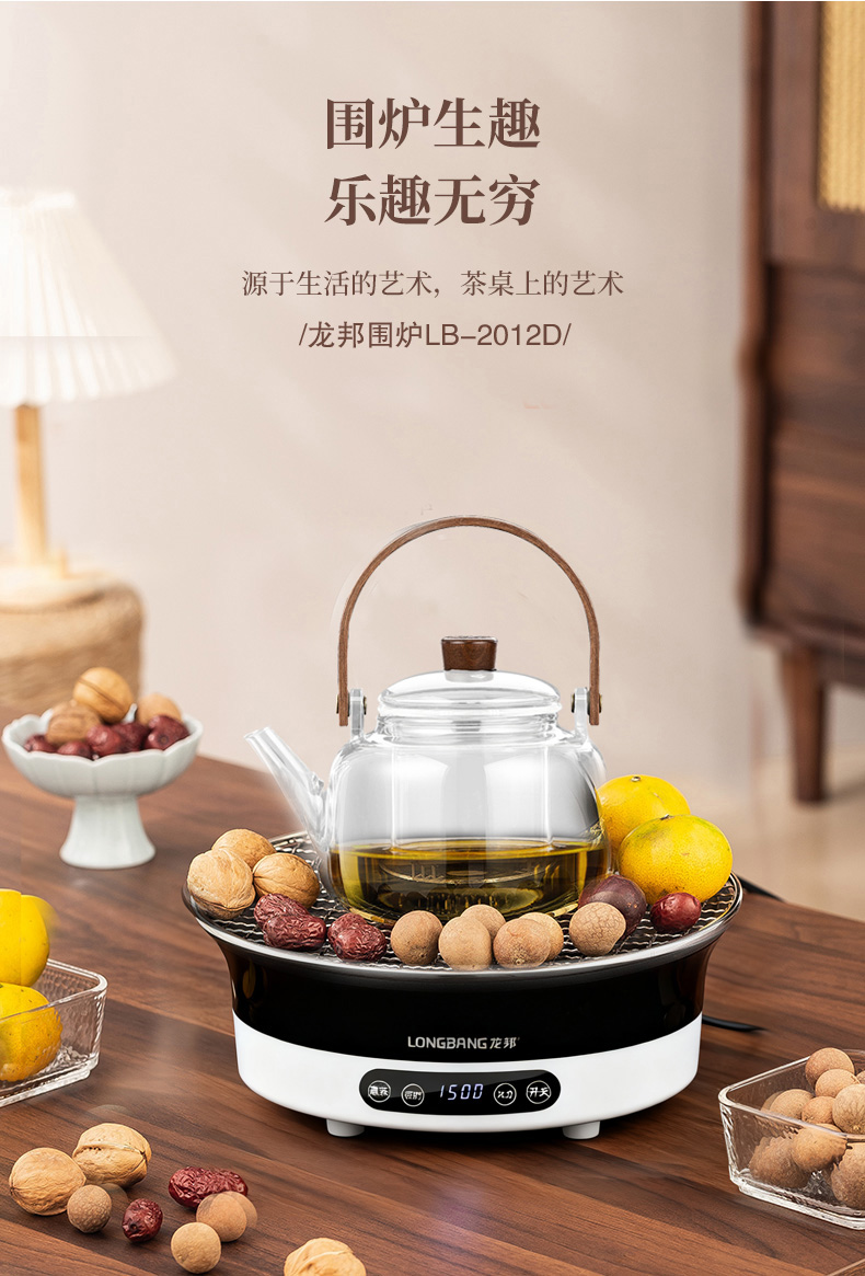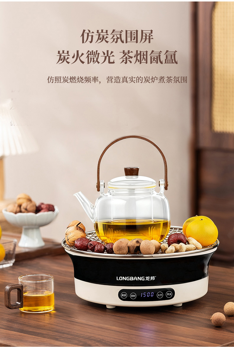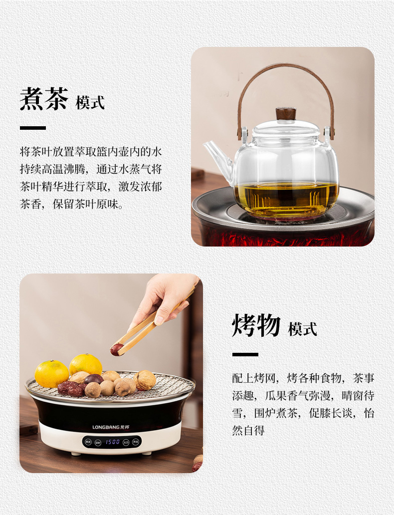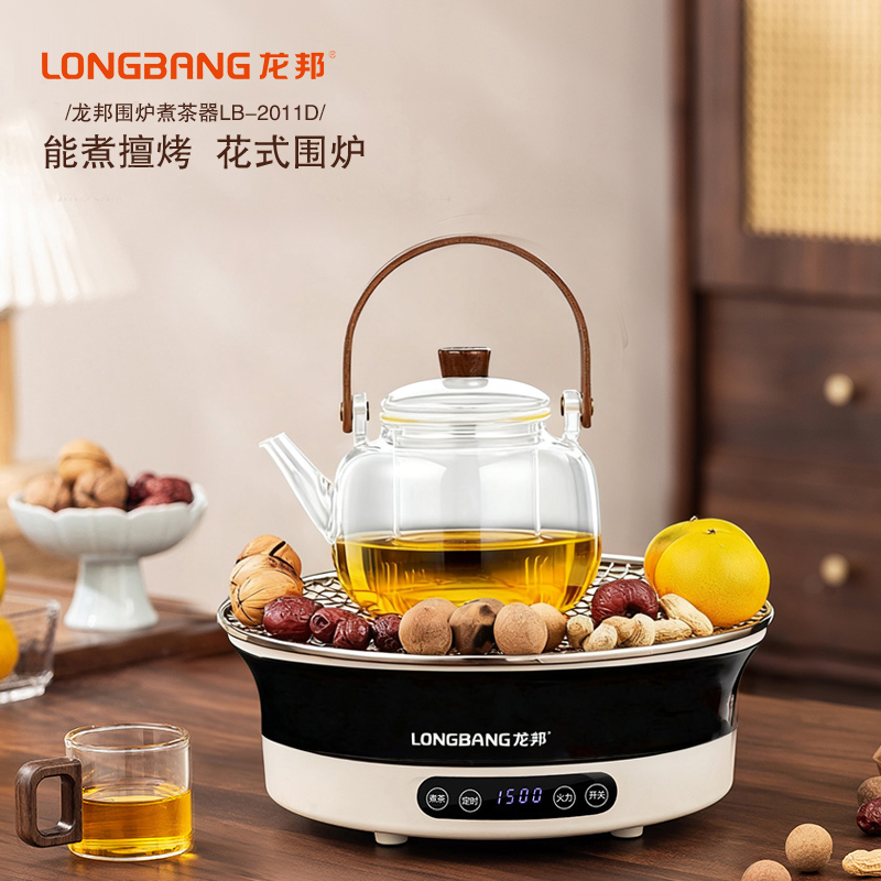 龙邦LB-2012D围炉煮茶器 养生壶 电陶炉煮茶器煮茶炉多功能围炉煮茶黑茶花茶泡茶蒸茶器不挑器具 米白-送烤网和全玻璃茶壶