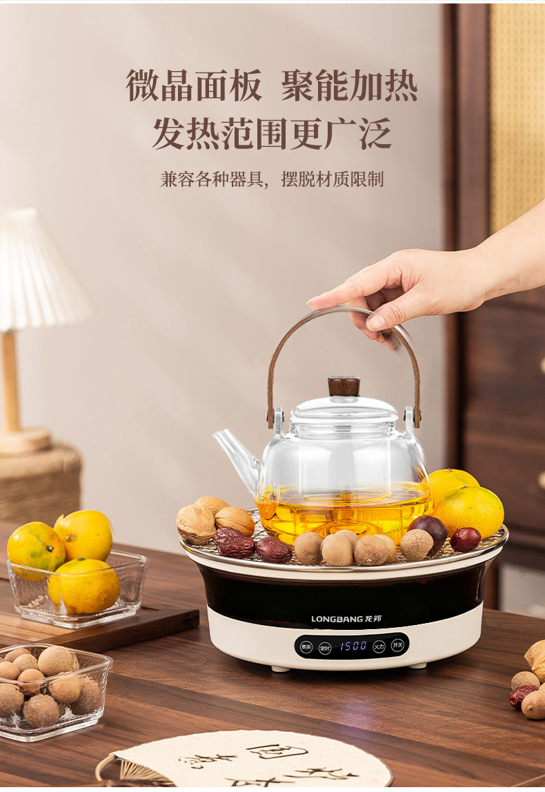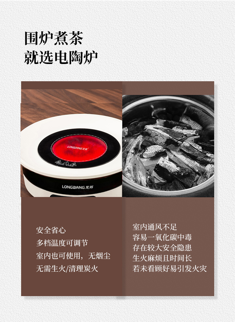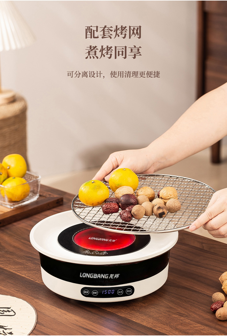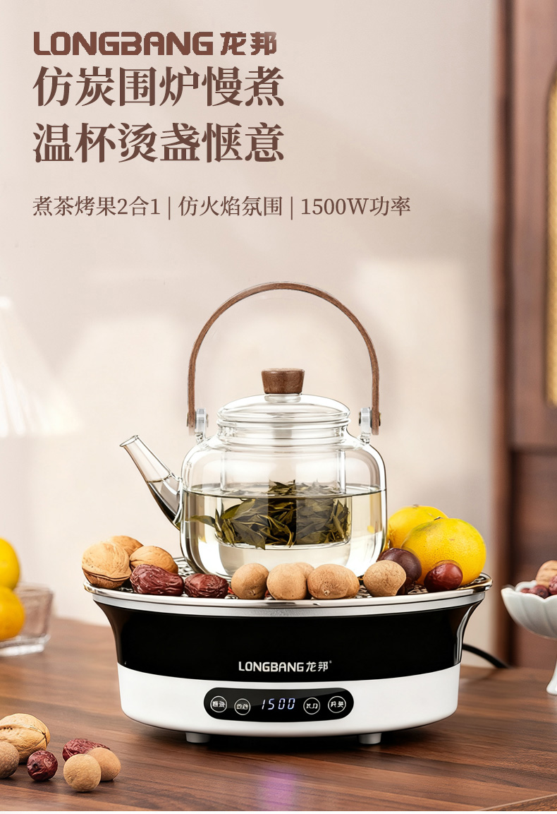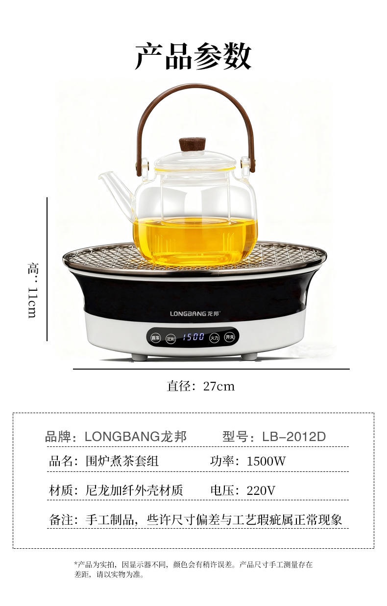 龙邦LB-2012D围炉煮茶器 养生壶 电陶炉煮茶器煮茶炉多功能围炉煮茶黑茶花茶泡茶蒸茶器不挑器具 米白-送烤网和全玻璃茶壶