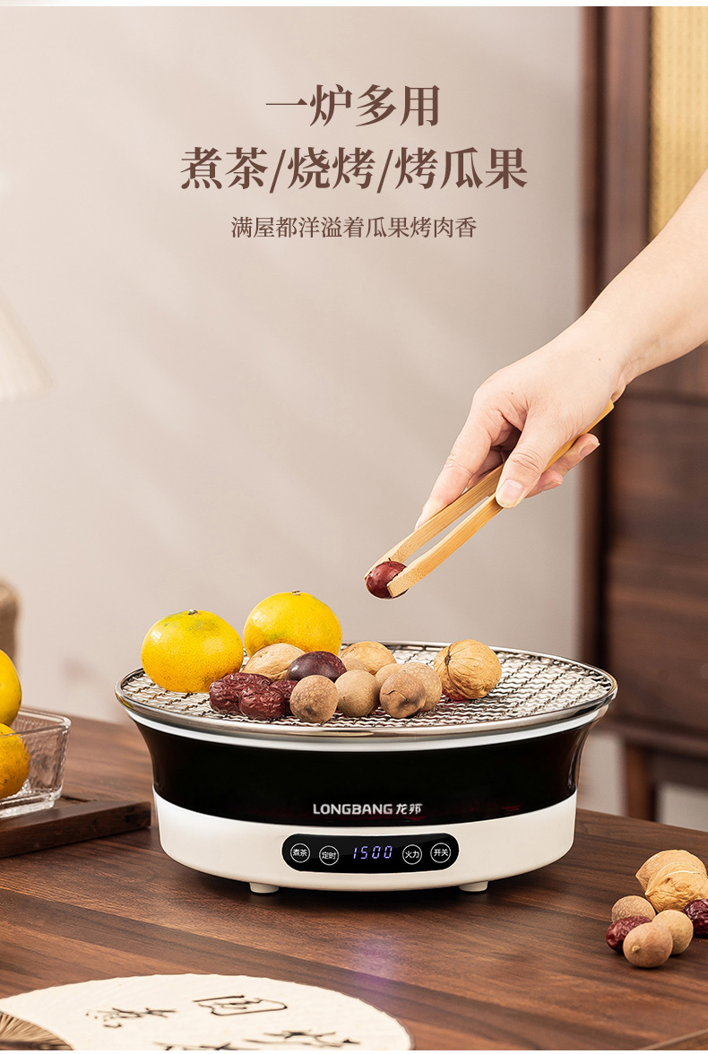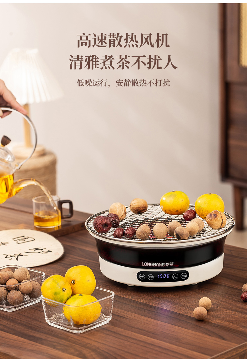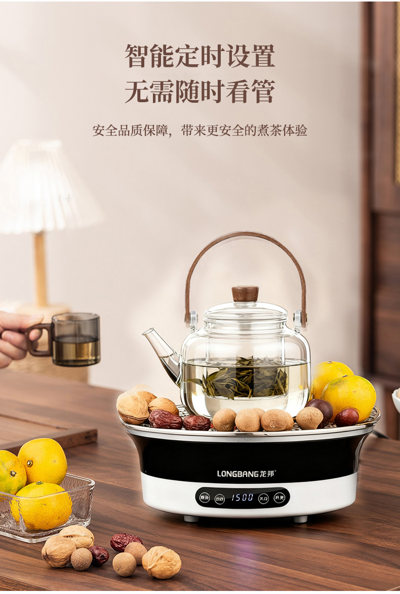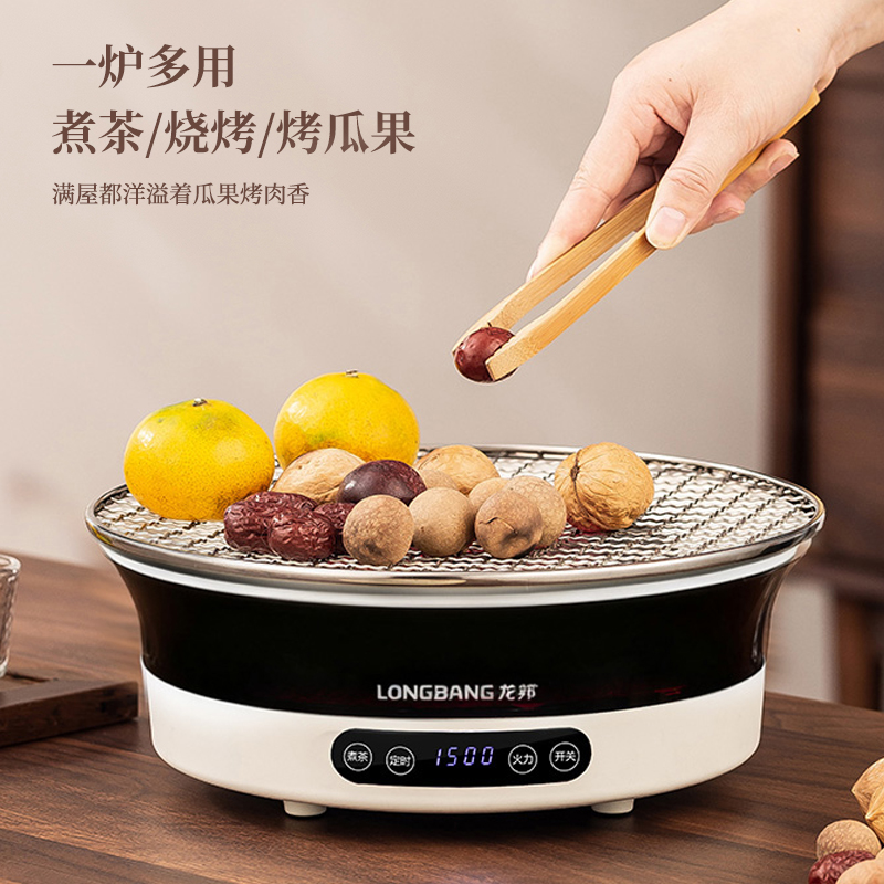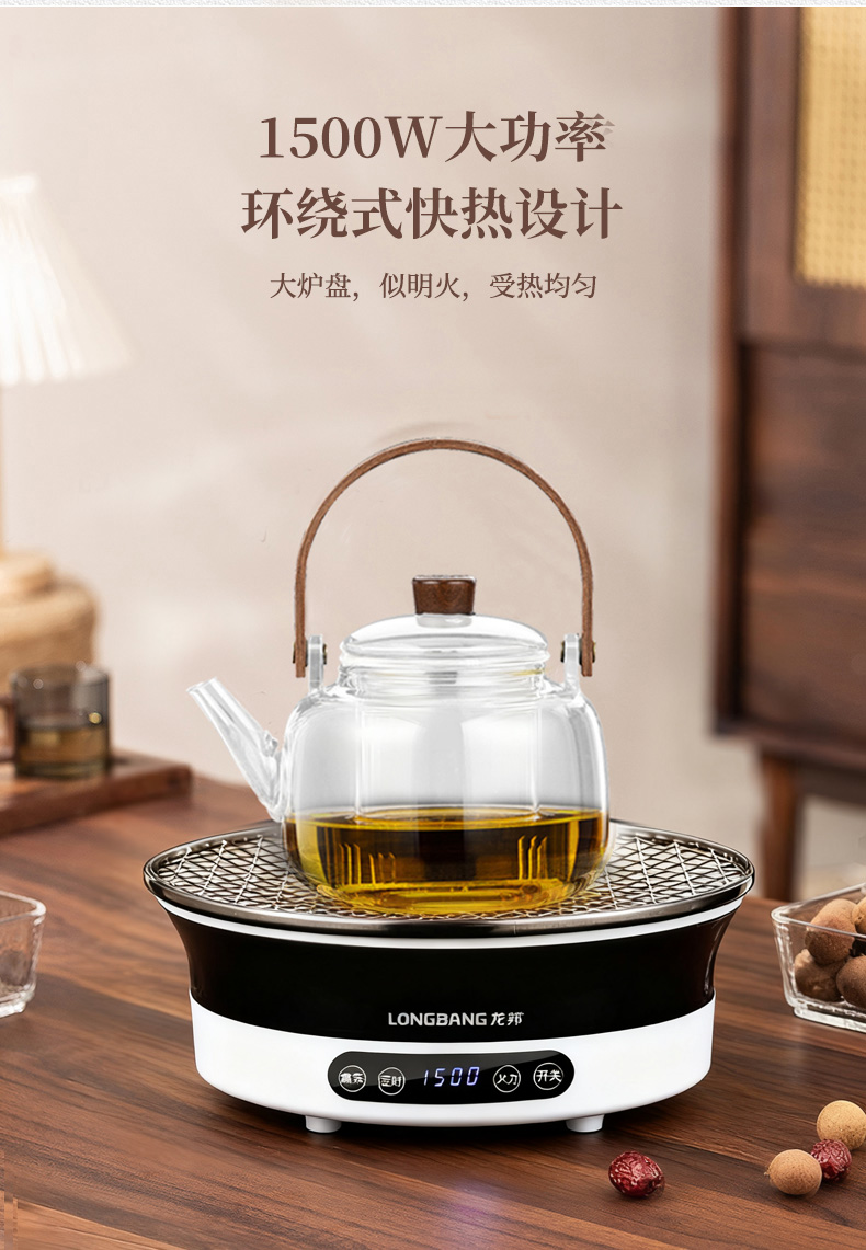 龙邦LB-2012D围炉煮茶器 养生壶 电陶炉煮茶器煮茶炉多功能围炉煮茶黑茶花茶泡茶蒸茶器不挑器具 米白-送烤网和全玻璃茶壶