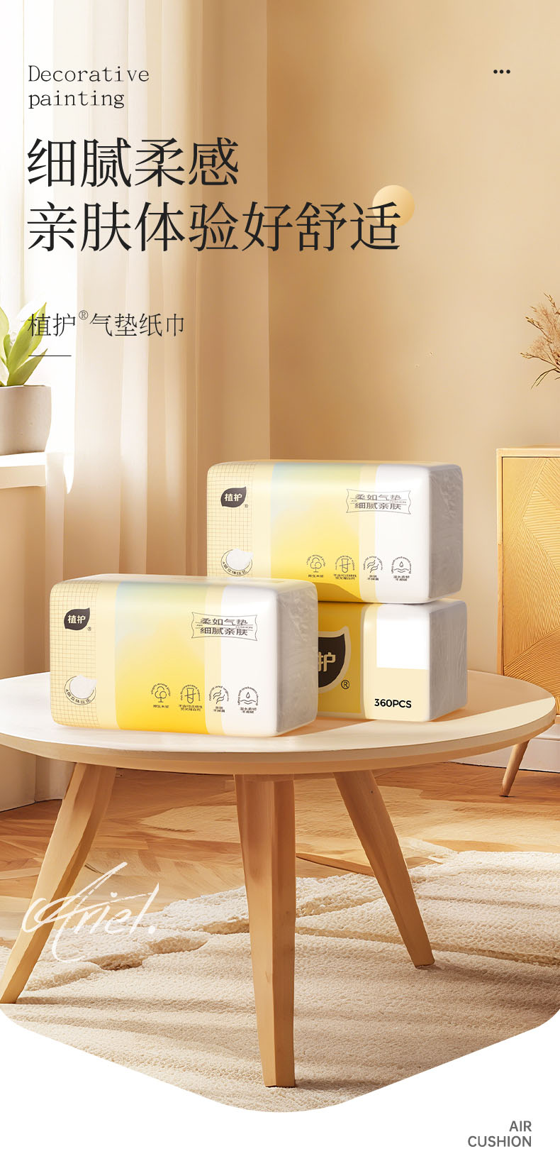 植护 气垫纸巾(炽芒系列)155*175/4层 90抽*3包 抽纸 ZH408740*3