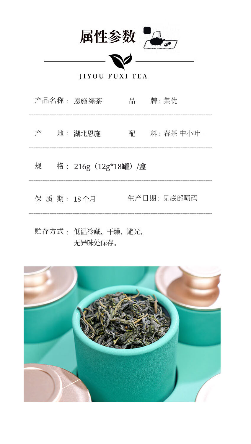 集优 恩施野生绿茶一级 绿茶礼盒套装216g【18罐*12g】一贯好礼绿色礼盒