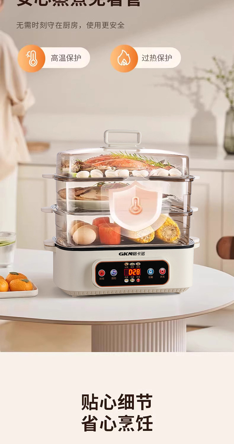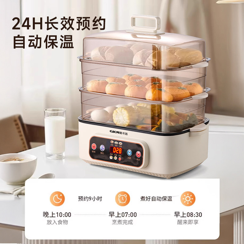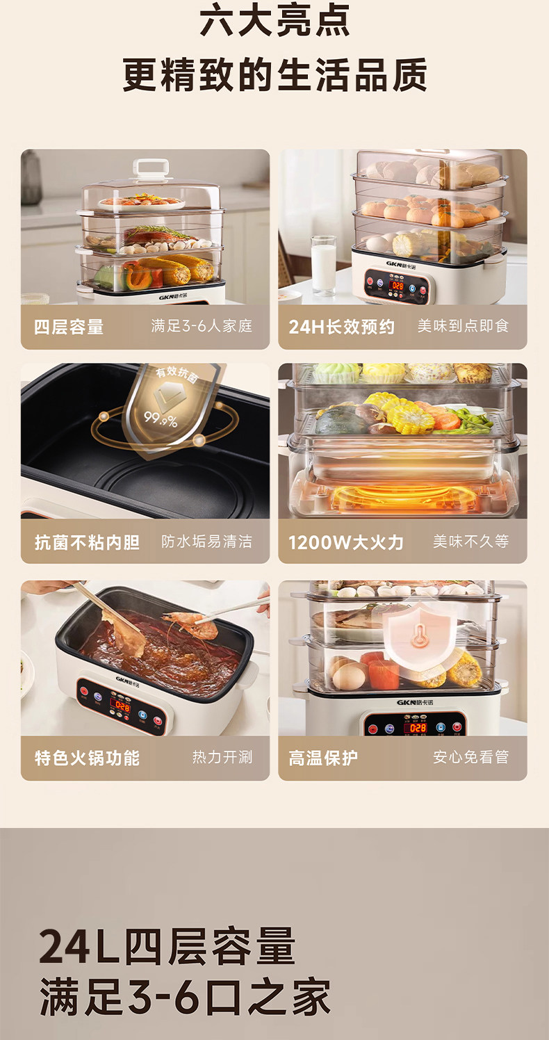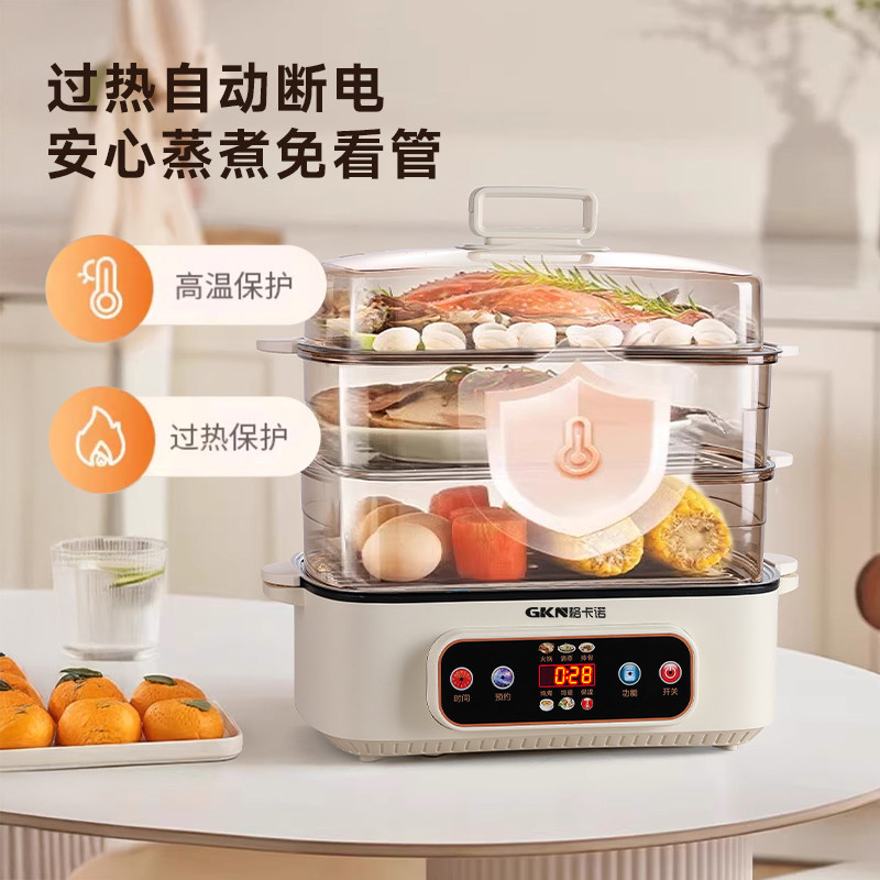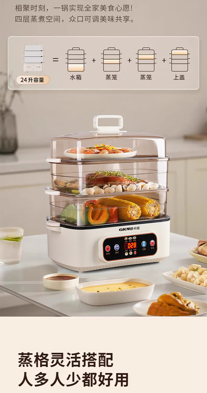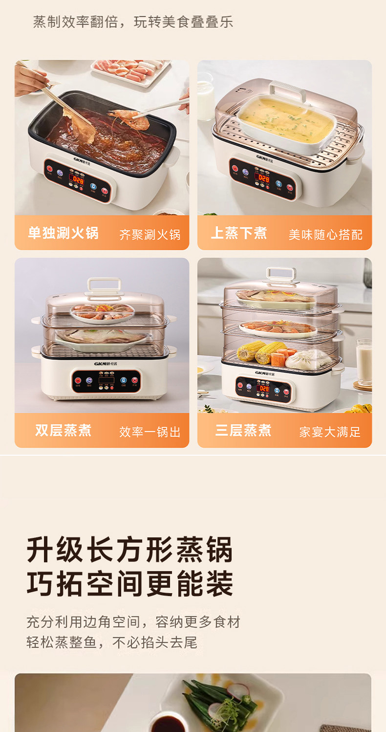 格卡诺多功能家用大容量四层不锈钢电蒸笼电蒸箱早餐机蒸煮炒一体火锅