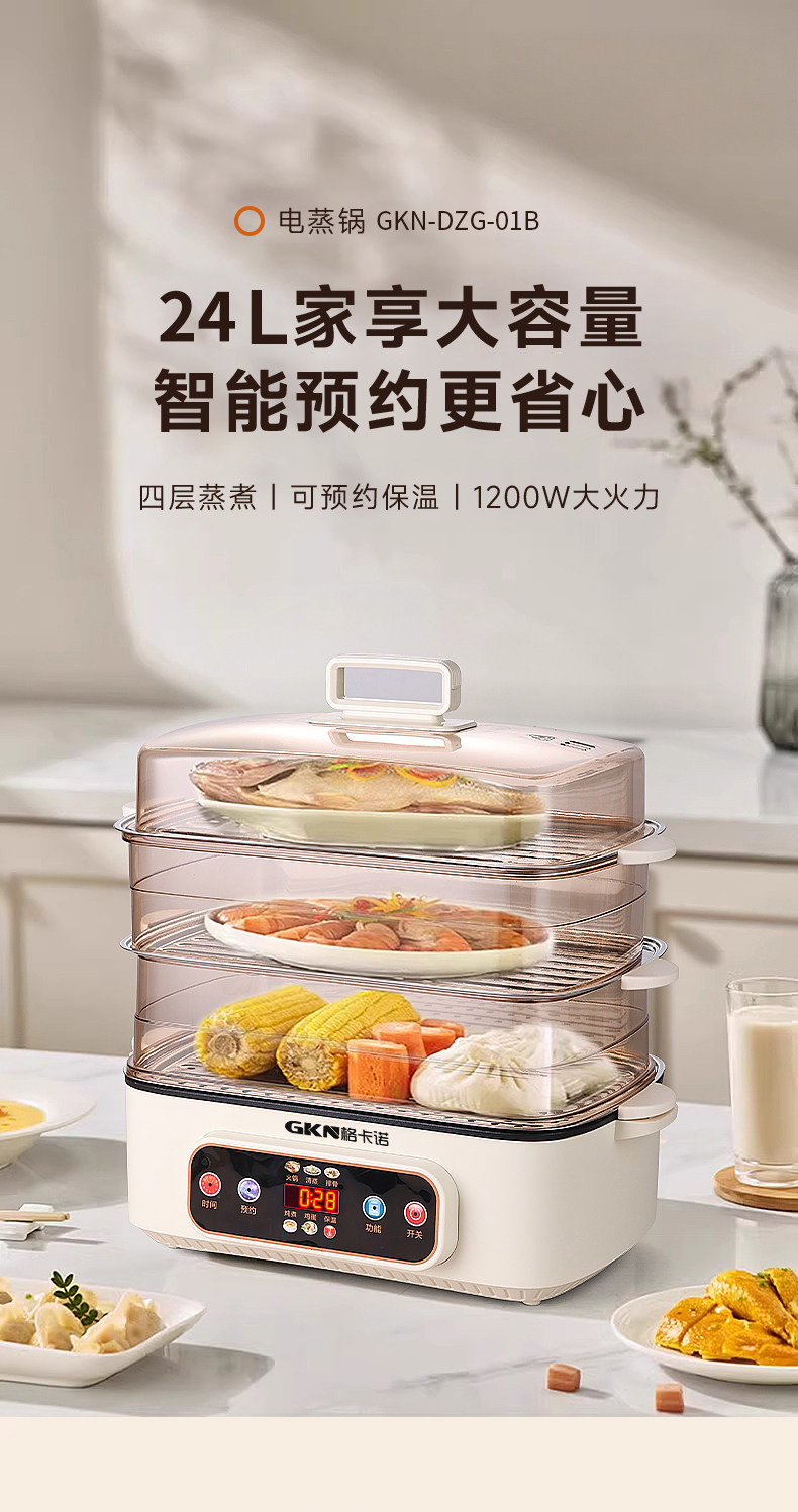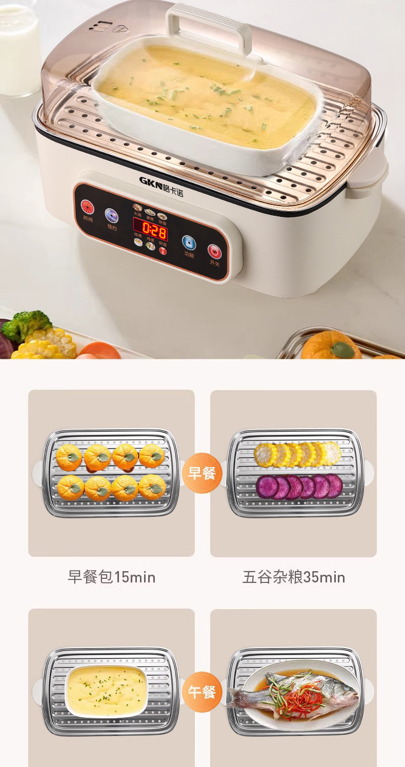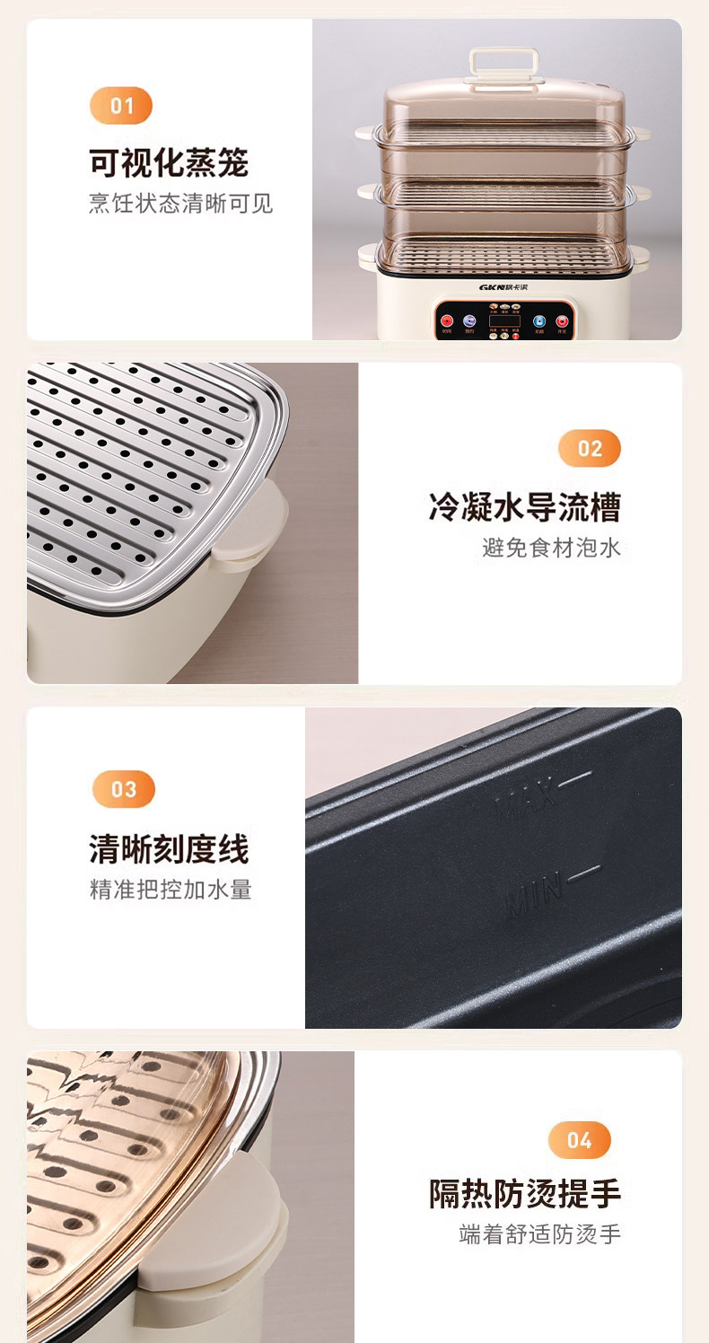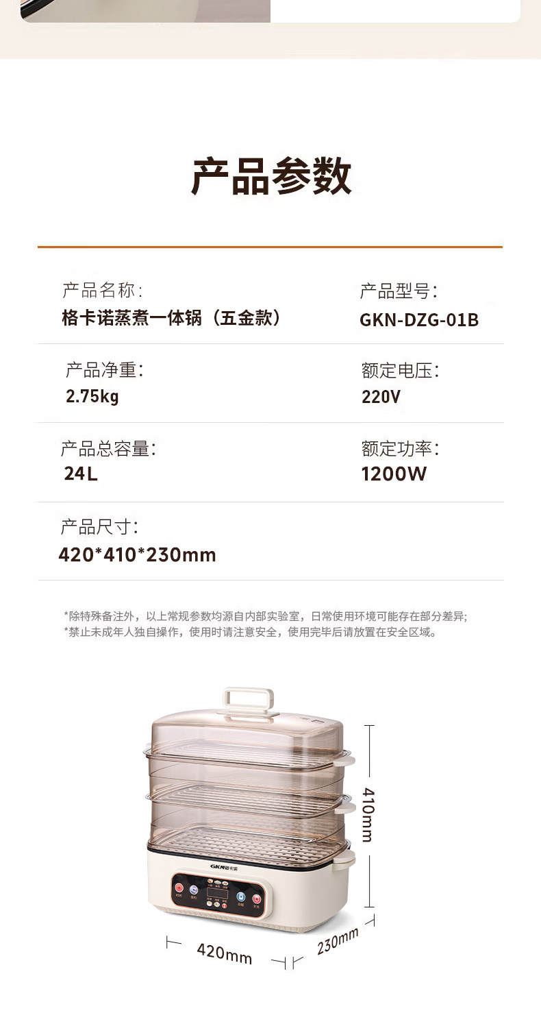 格卡诺多功能家用大容量四层不锈钢电蒸笼电蒸箱早餐机蒸煮炒一体火锅