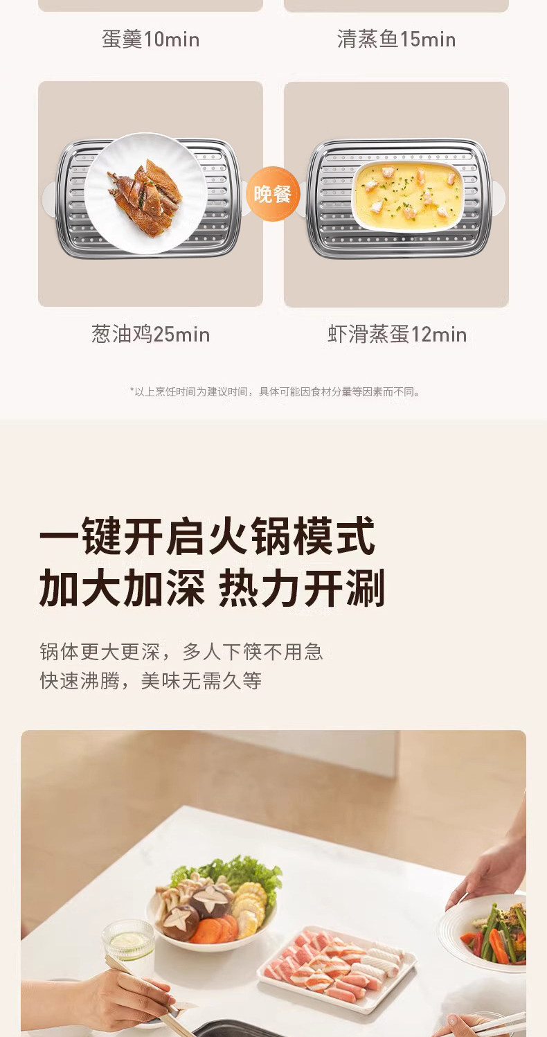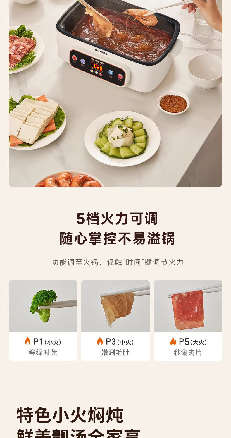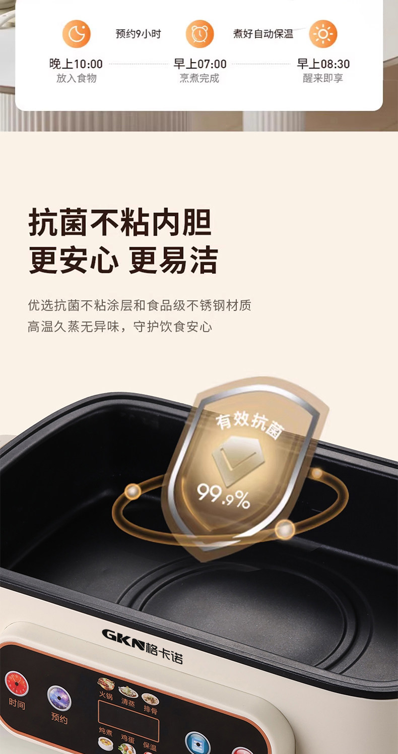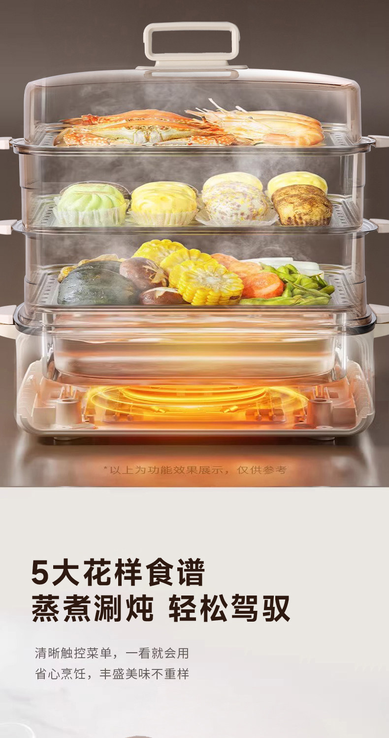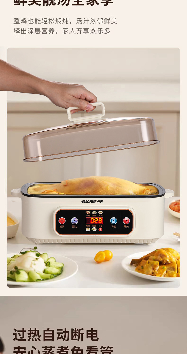 格卡诺多功能家用大容量四层不锈钢电蒸笼电蒸箱早餐机蒸煮炒一体火锅