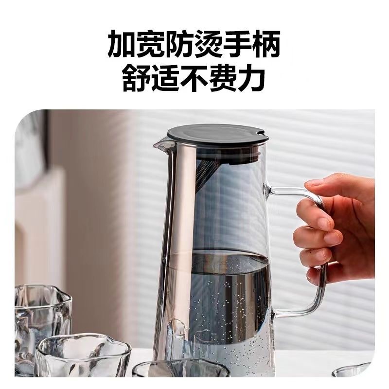 【一壶四杯】星恩烟灰色玻璃水壶水杯轻奢套装 高硼硅玻璃水壶热水壶冷水壶 耐高温水杯 家用套装客厅待客泡茶杯 耐温差0-100度 精美彩盒+邮购包装 送礼佳选 乔迁礼
