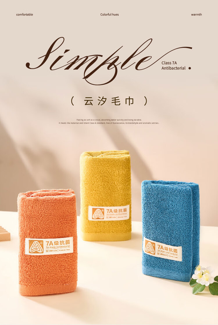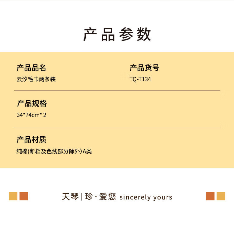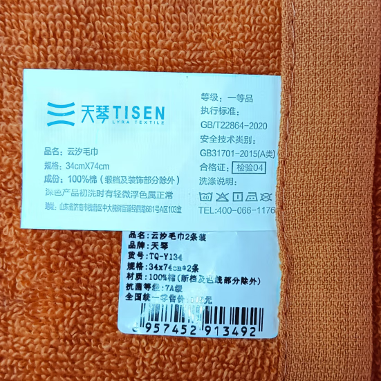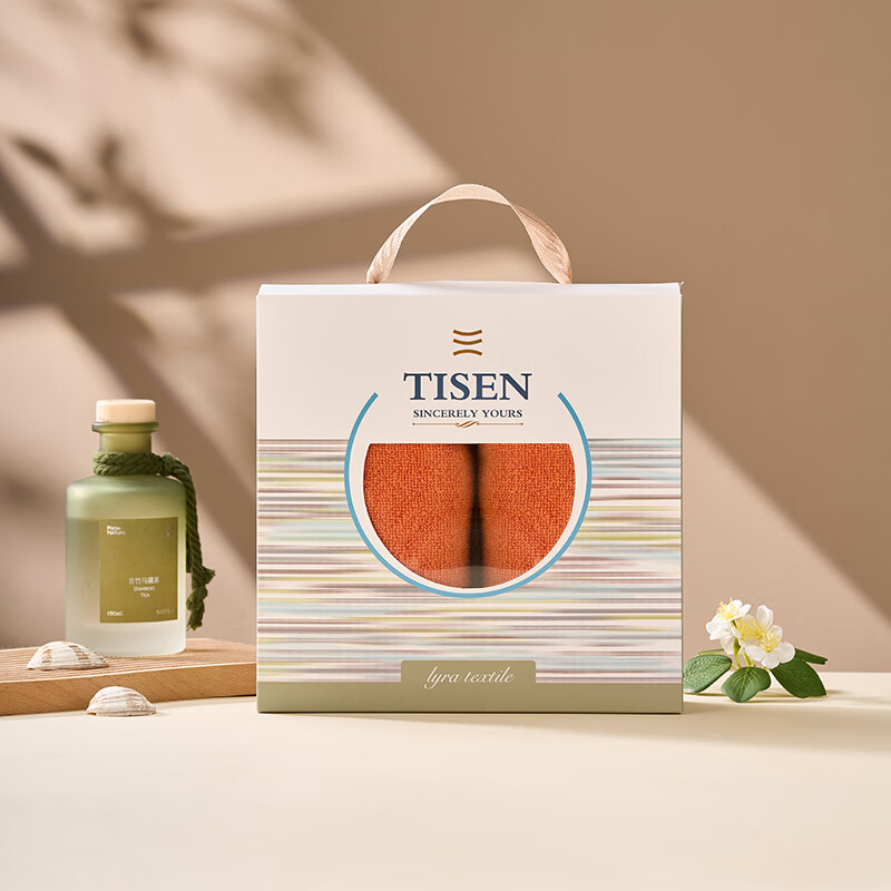 天琴云汐毛巾2条装 7A级抗菌毛巾礼盒装TQ-Y134 橙色两条