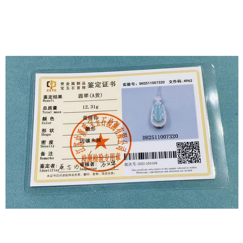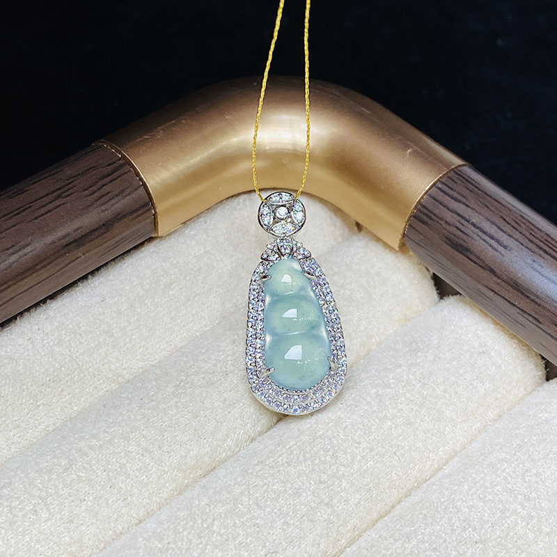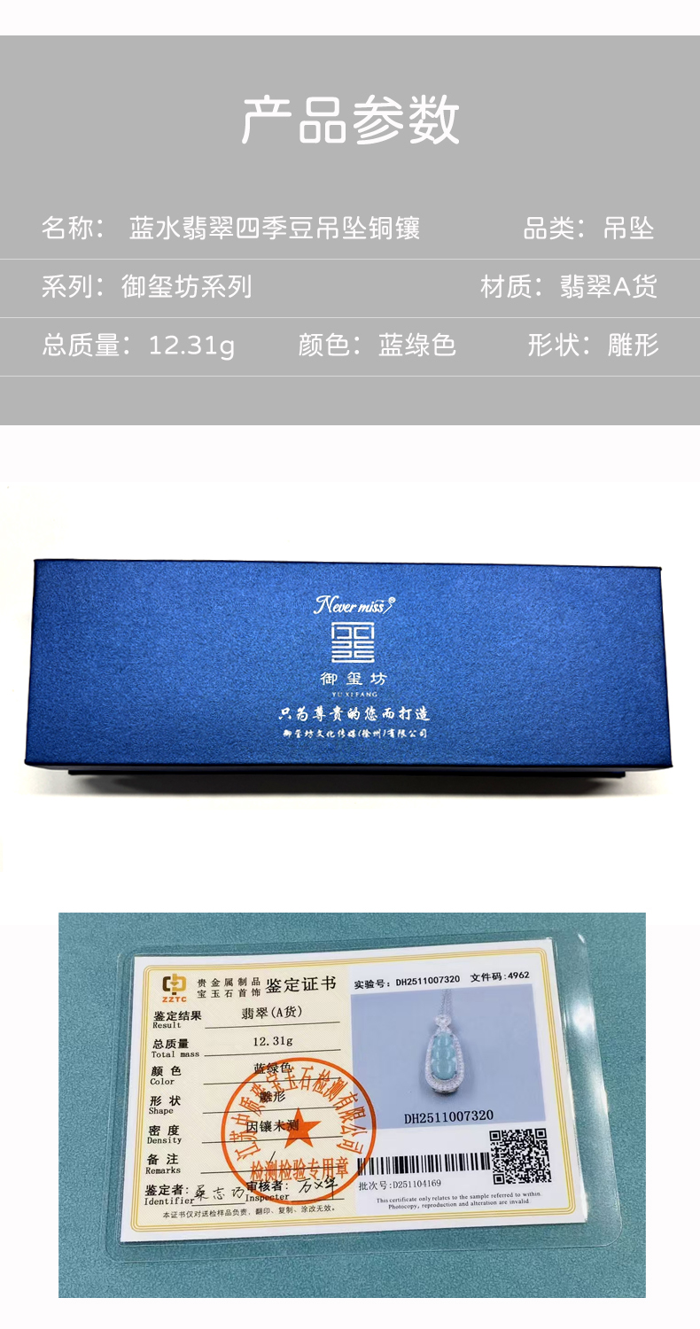 Never Miss 御玺坊系列 蓝水翡翠A货四季豆吊坠项链 翡翠A货 单只附赠精美礼盒【一证一物】