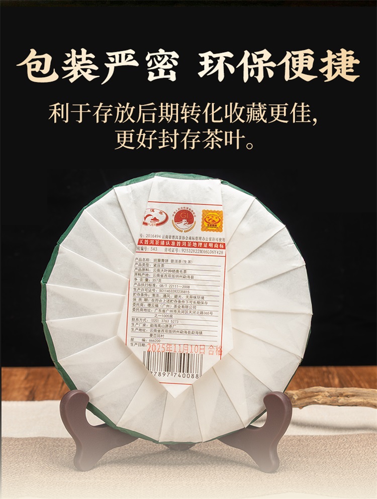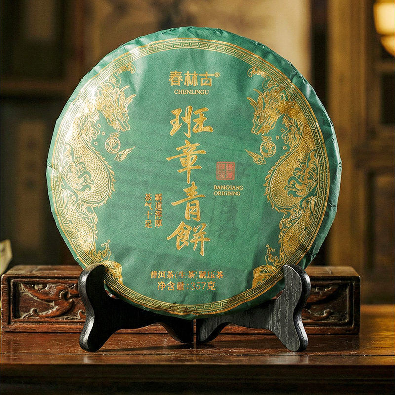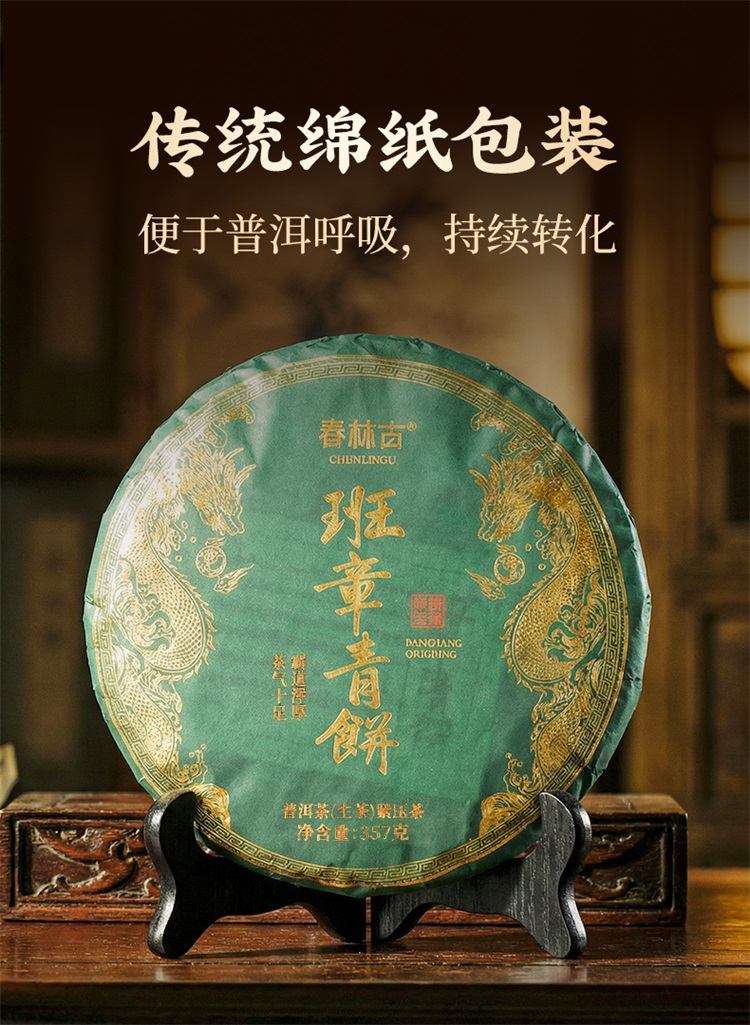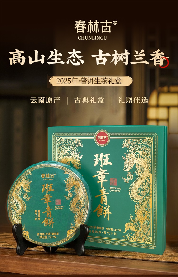春林古普洱茶班章青饼普洱茶《生茶》高山生态古树兰香茶叶357g礼盒装