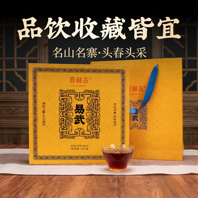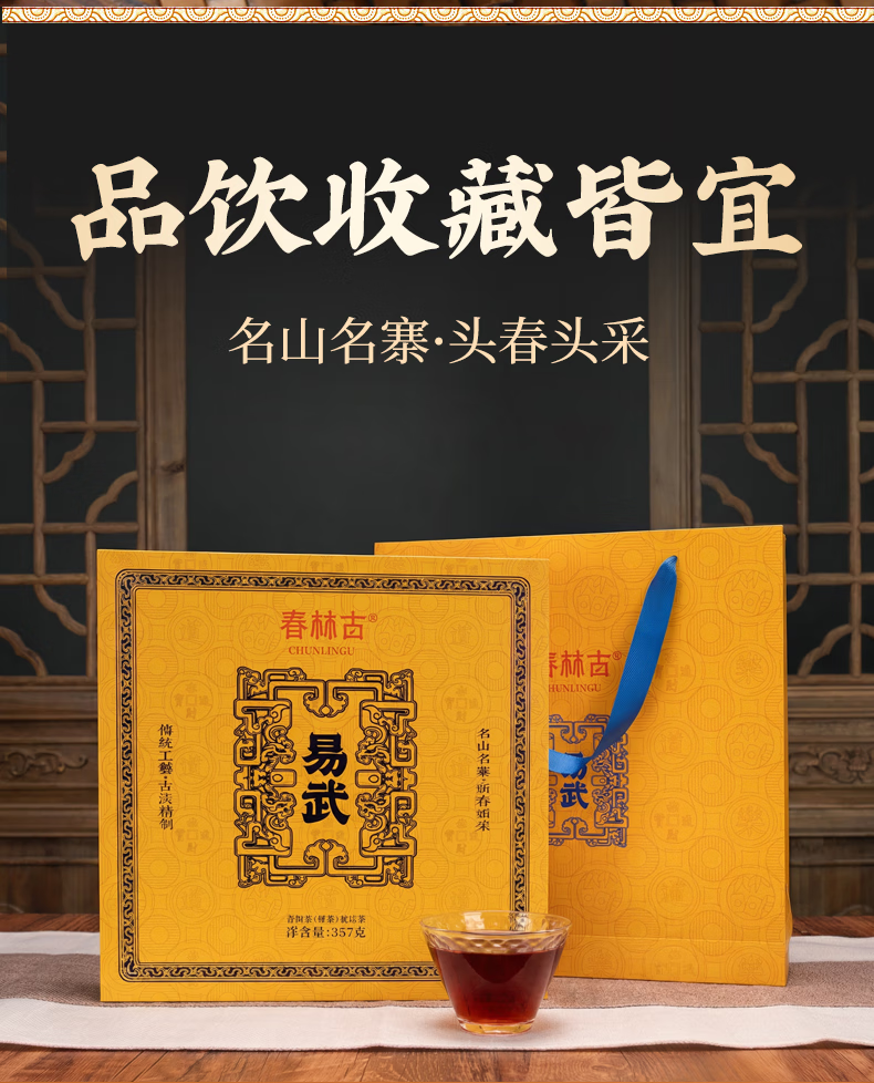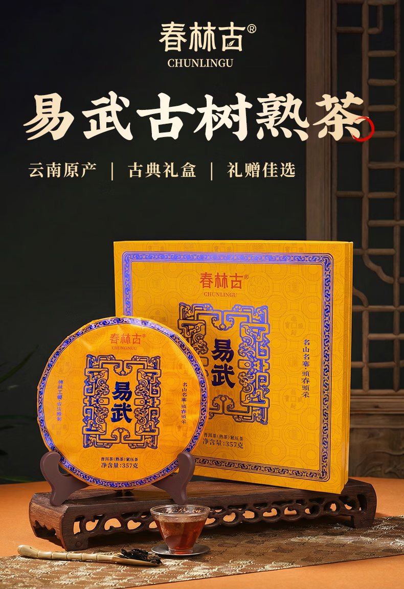 春林古普洱茶易武古树普洱茶《熟茶》名山名寨头春头采茶叶357g礼盒装