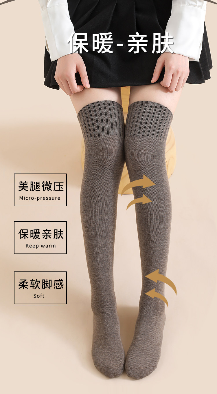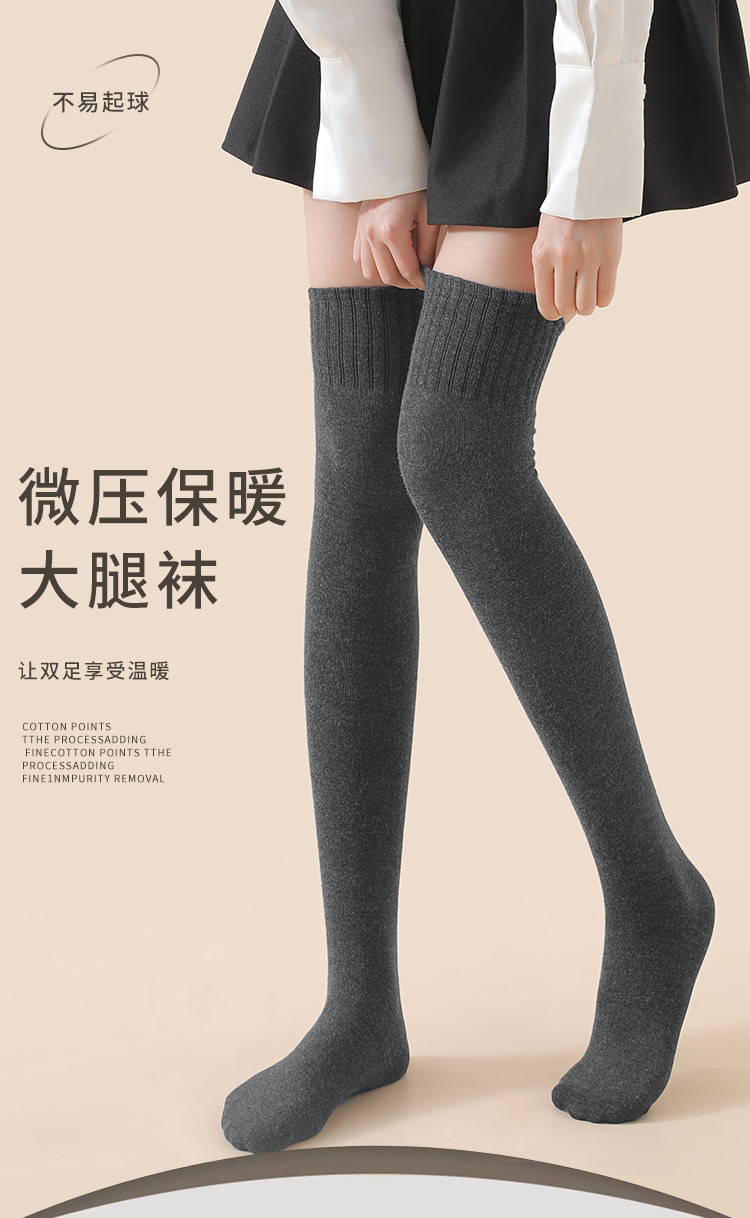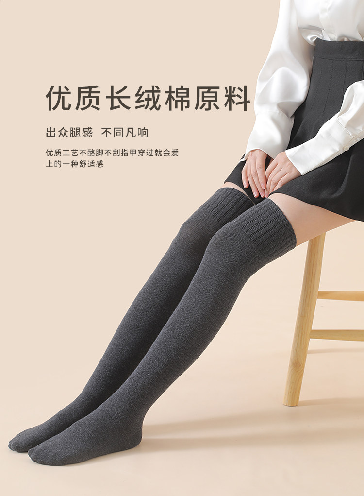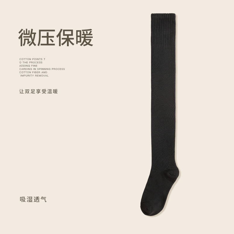 过膝袜子女秋冬长筒袜加厚保暖护膝大腿袜纯棉压力显瘦高筒袜棉光腿袜 2双装
