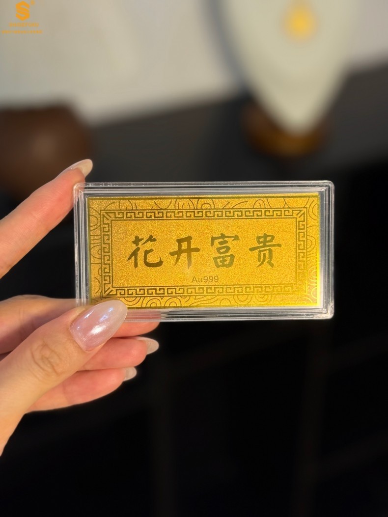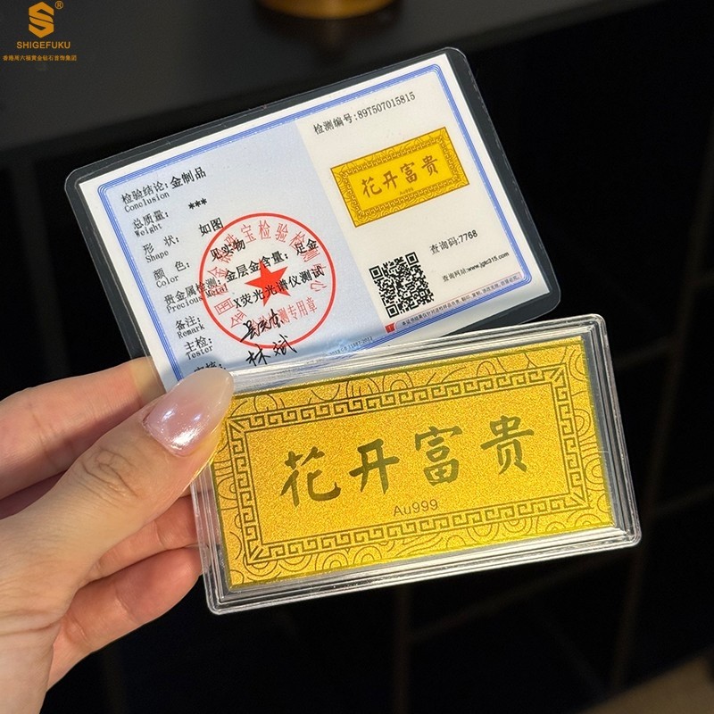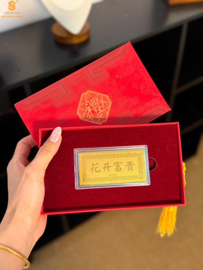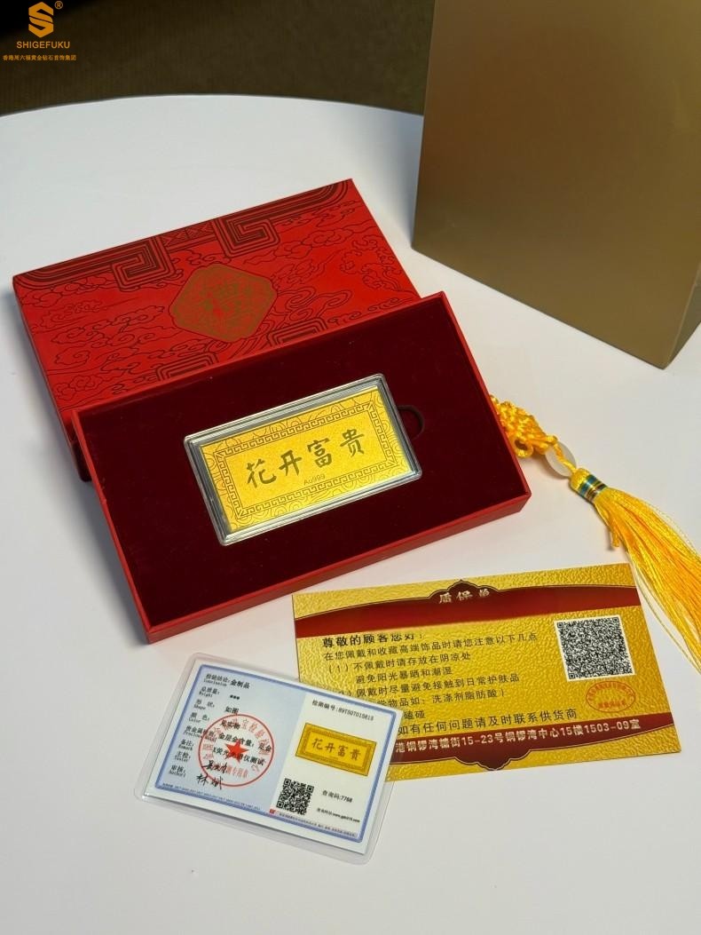 香港周六福黄金钻石首饰999足金花开富贵金钞(礼盒礼袋套装)