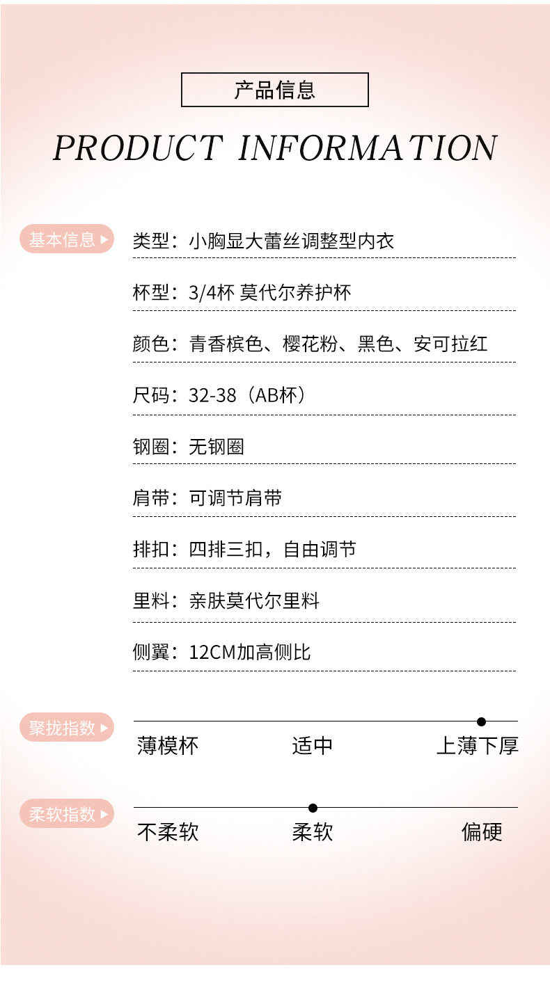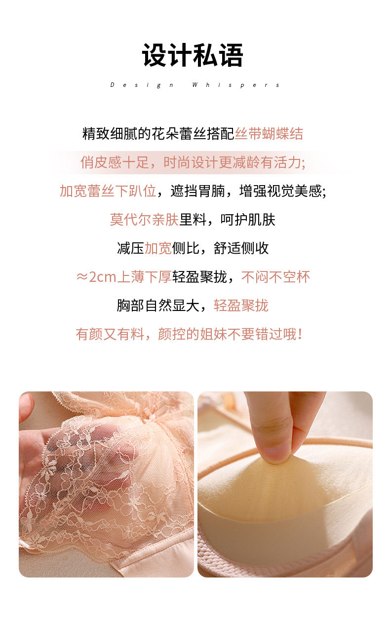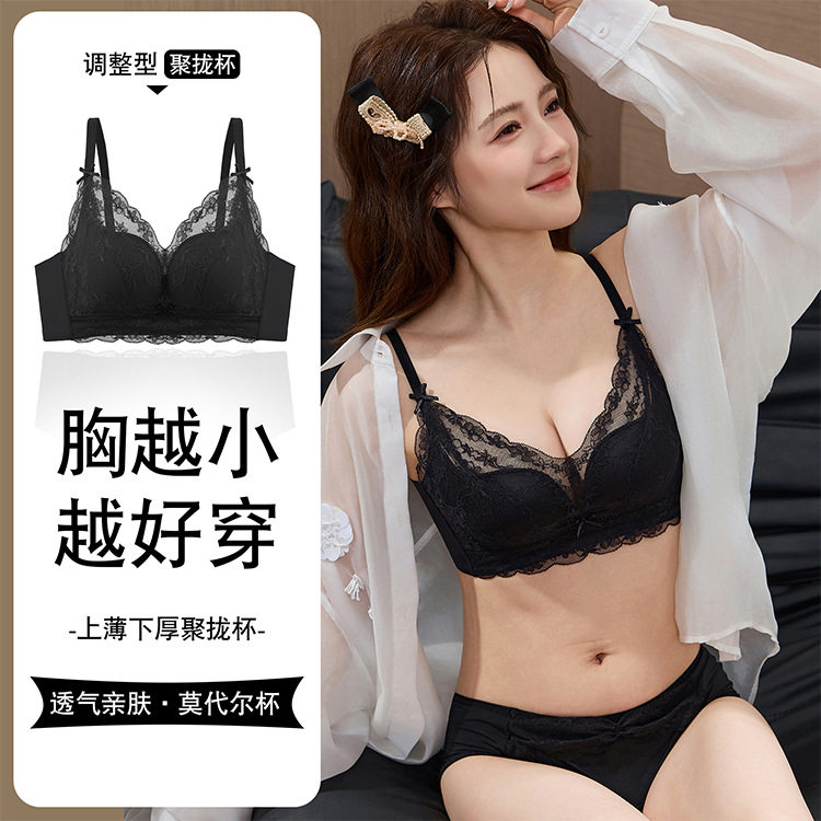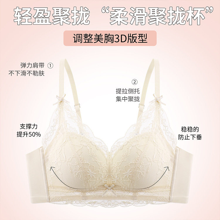 蕾丝莫代尔亲肤小胸聚拢显大内衣女调整型裸感舒适无钢圈文胸