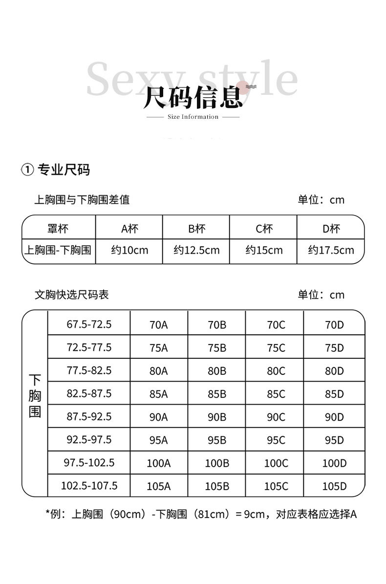 尺码:S码【32/70 AB通杯】 M码【34/75 AB 通杯】 L码【36/80 AB通杯】 XL码【38/85 AB通杯】
