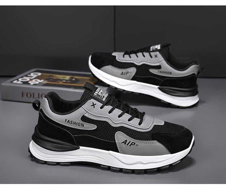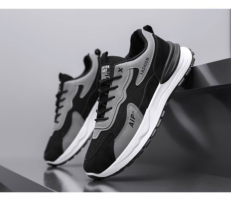 新款春季男士网面透气老爹鞋运动休闲潮鞋厚底增高鞋子男