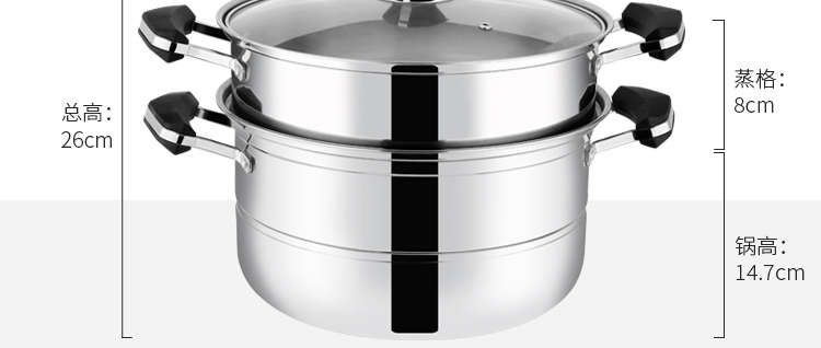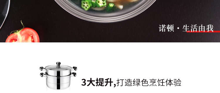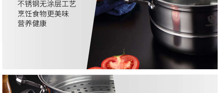 NORTON诺顿 克尔斯三层蒸锅 2ZKES028 不锈钢蒸锅带蒸格 燃气炉电磁炉通用 28cm