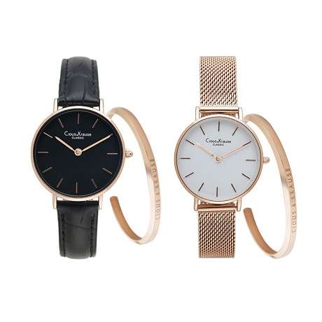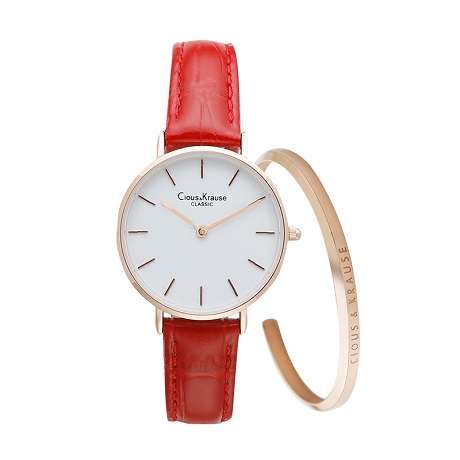 英国 Clous Krause进口机芯牛皮/钢表带时尚女表+手镯两件套装礼盒 全国包邮(黑面钢带/白面钢带/黑面皮带/白面皮带)下单请备注所需颜色款式