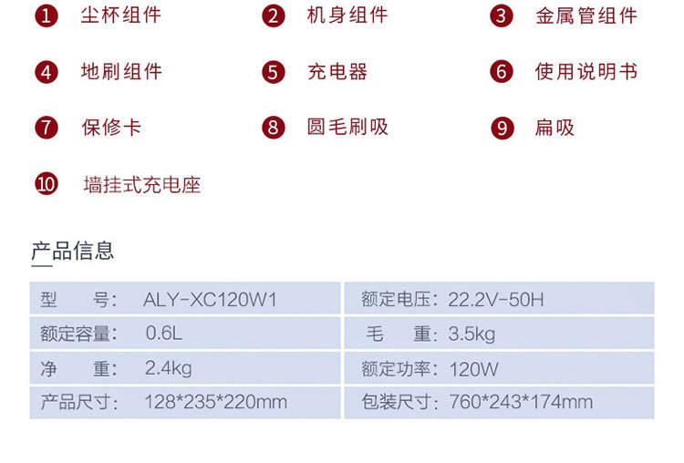 ACA无线手持吸尘器 家用小型大功率手持立式多功能迷你无绳充电吸尘机 ALY-XC120W1