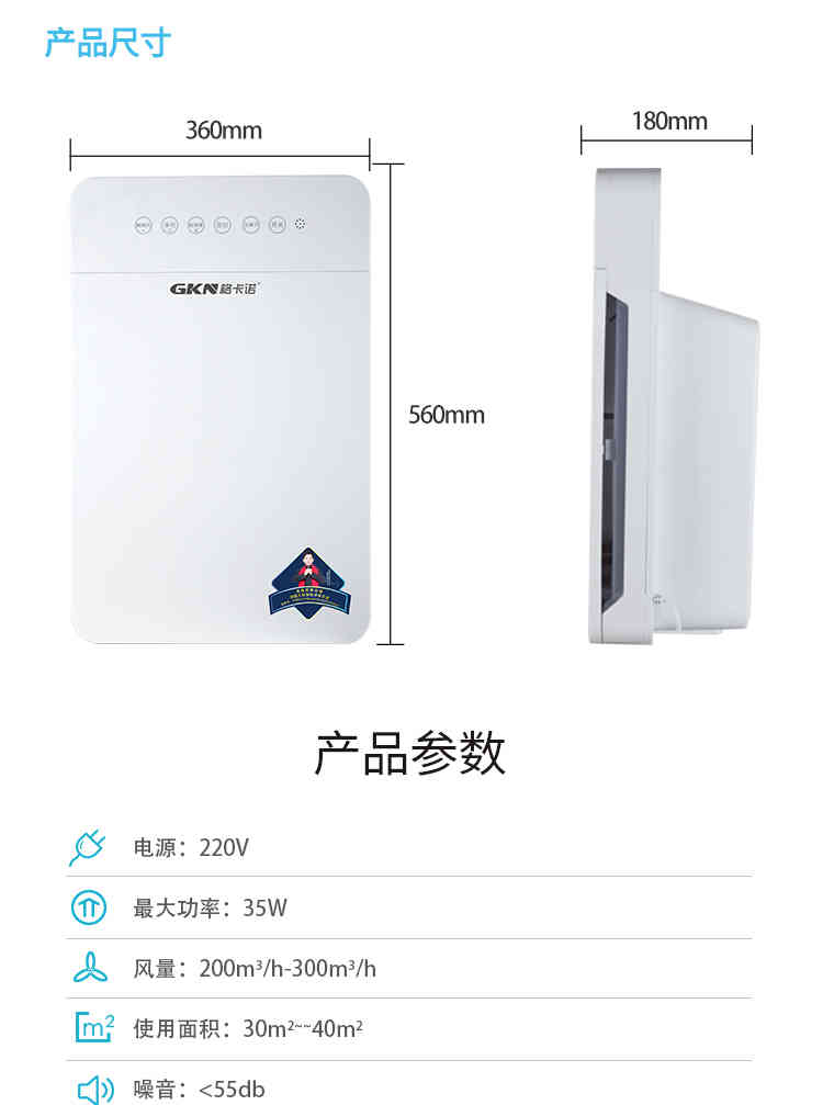 格卡诺 家用空气净化器办公室去除甲醛GKN-KJ-B