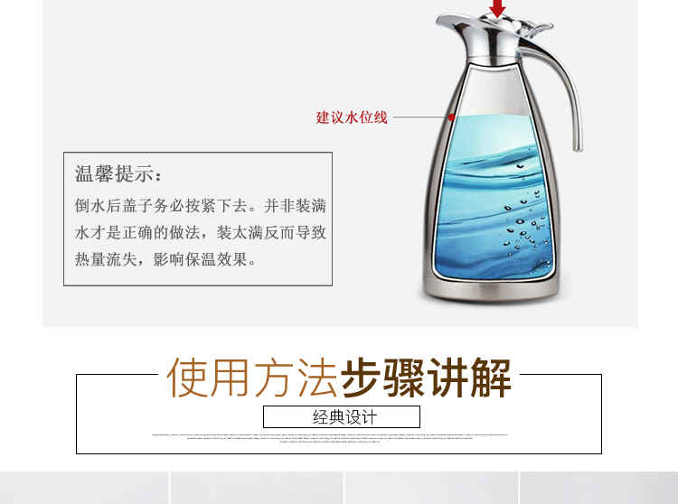 此不锈钢保温瓶家庭用容量大小合适,美观大方,密封效果好,保温性能强,容易清洗