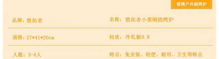 YUKONJ/悠拓者 小黑刚户外烧烤炉 可折叠 YT-SKL001