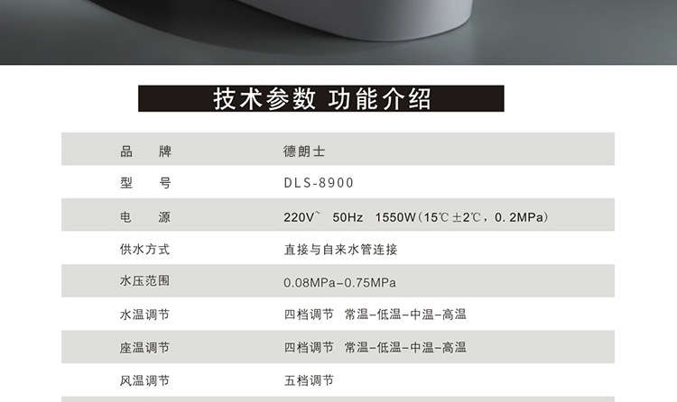 德朗士智能马桶盖 即热式自动洗烘 风温水温座温可调节 DLS-8900
