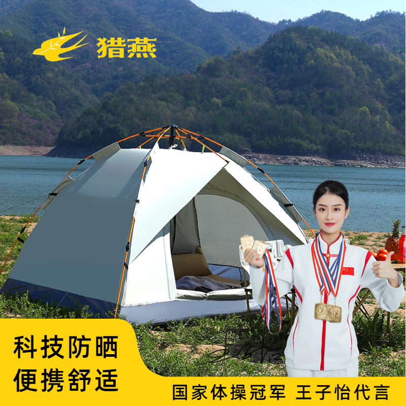 猎燕假双层米白色大号双门帐篷200*200*135cm