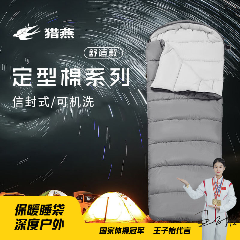 猎燕机洗可拼接棉睡袋成人户外露营睡袋带帽野营1.2KG大人睡袋LYS-1