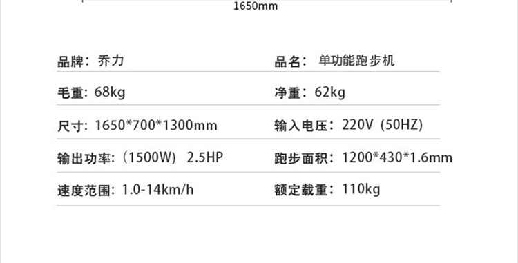 乔力 G10豪华跑步机 健身器材 家用静音可折叠智能跑步运动器材家庭健身机单功能