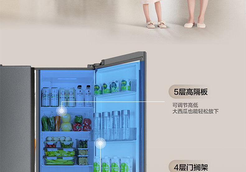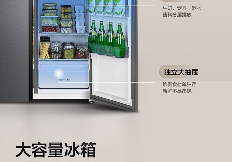 奥马(Homa) 432升十字对开门冰箱 一级能效双变频风冷 BCD-432WDMM/B银河星空