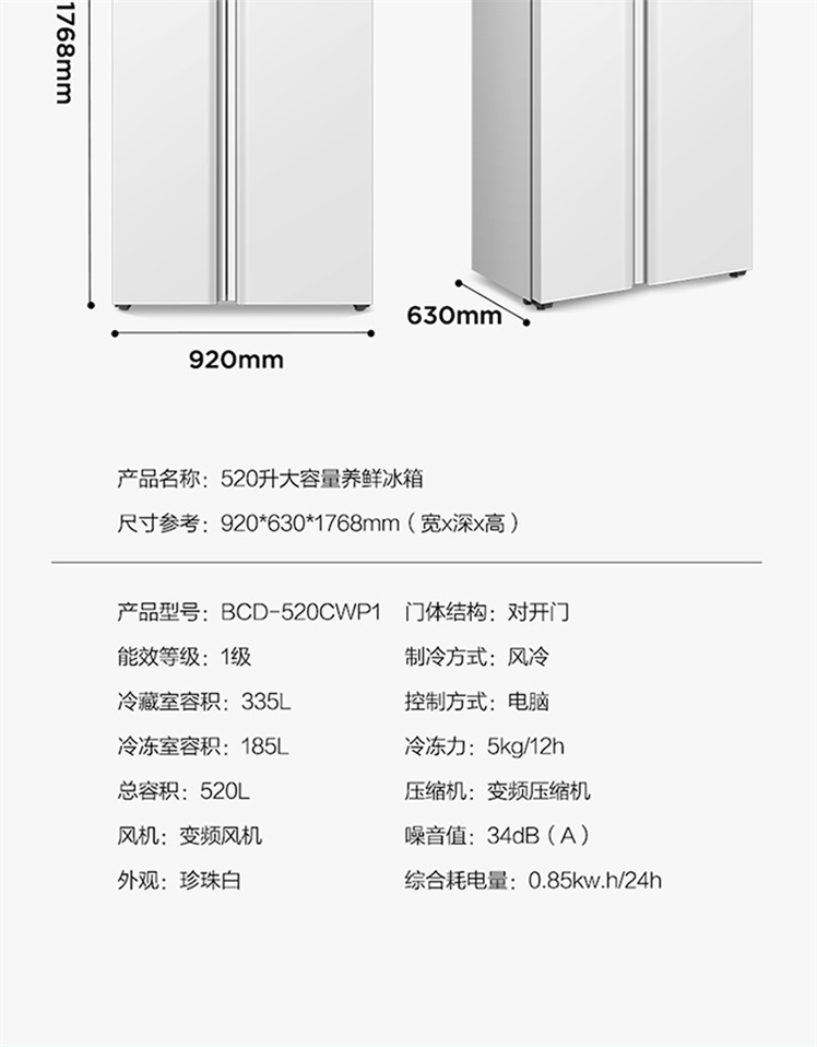 TCL冰箱 BCD-521CW1 521升定频/ BCD-520CWP1 520升双变频智慧恒温养鲜 纤薄对开 风冷无霜节能 对开门电冰箱 送货上楼 一次下单41台以上 运费70元/台 西藏不发货