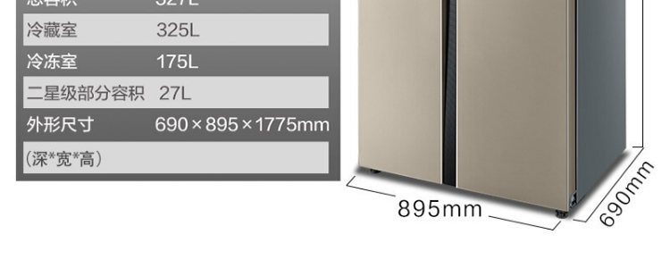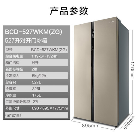 美的/Midea 对开门双开门风冷527升家用电冰箱BCD-527WKM-ZG 芙蓉金 送货上楼 新旧老款随机发货