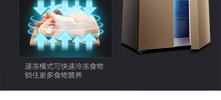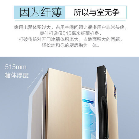 康佳/KONKA 405升 对开门冰箱 隐藏式把手 电脑温控,纤薄静音,风冷无霜,轻奢金色立式冰箱 BCD-405WD5EGX送货至楼下
