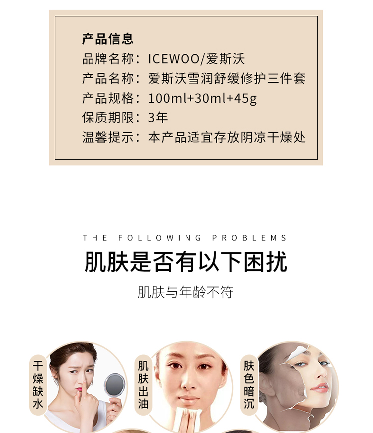 icewoo/爱斯沃 多效修护精华乳+雪润舒缓修护三件套 央视品牌