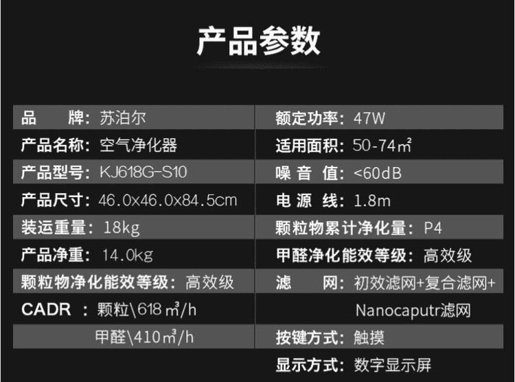SUPOR/苏泊尔 KJ618G-S10 空气净化器家用除甲醛烟尘三重过滤静音